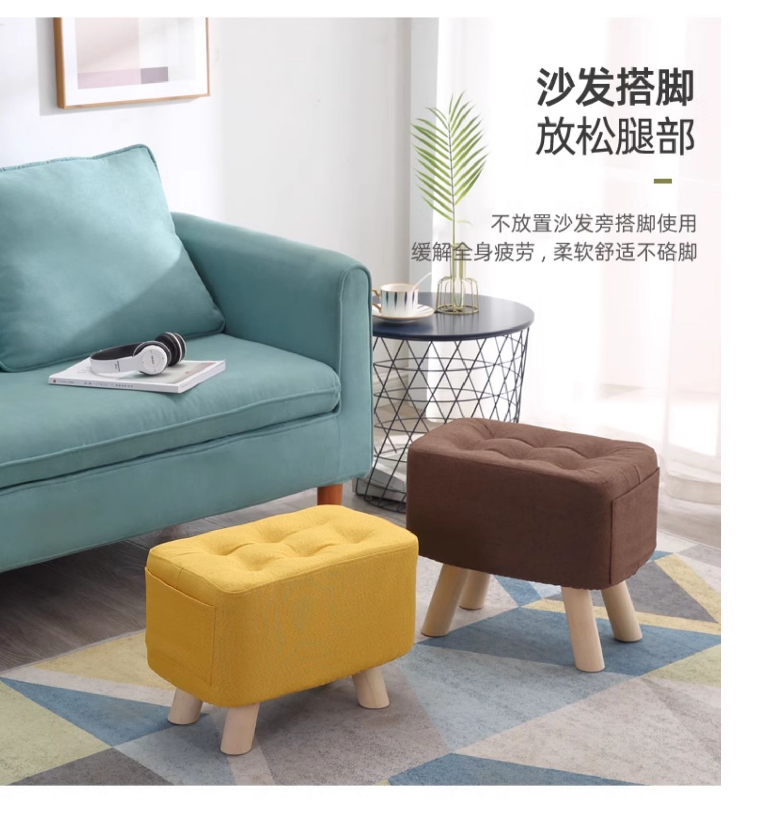 패브릭 작은 의자 가정용 도어 신발 의자 솔리드 우드 벤치 거실 소파 의자 발판 소프트 백 페달 로우 스톨