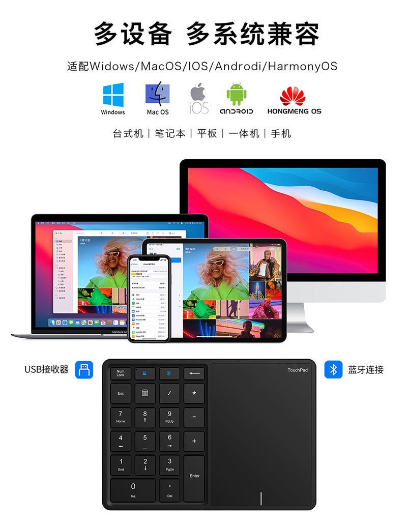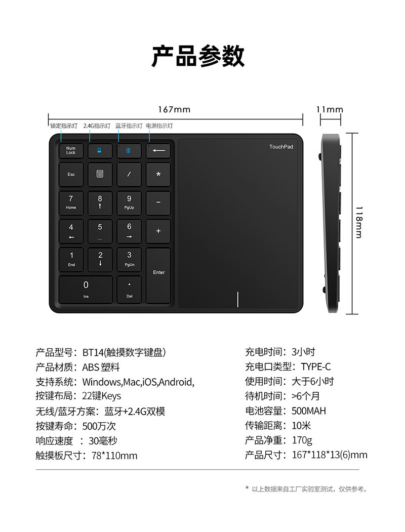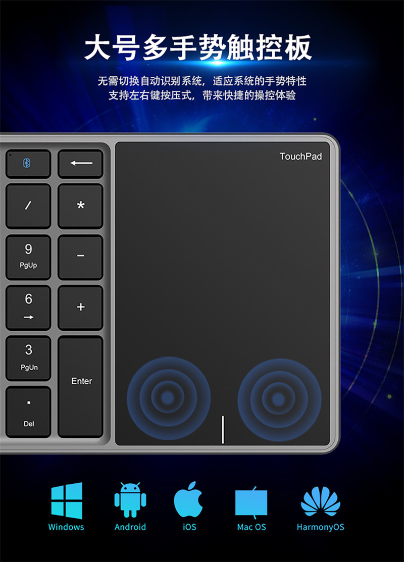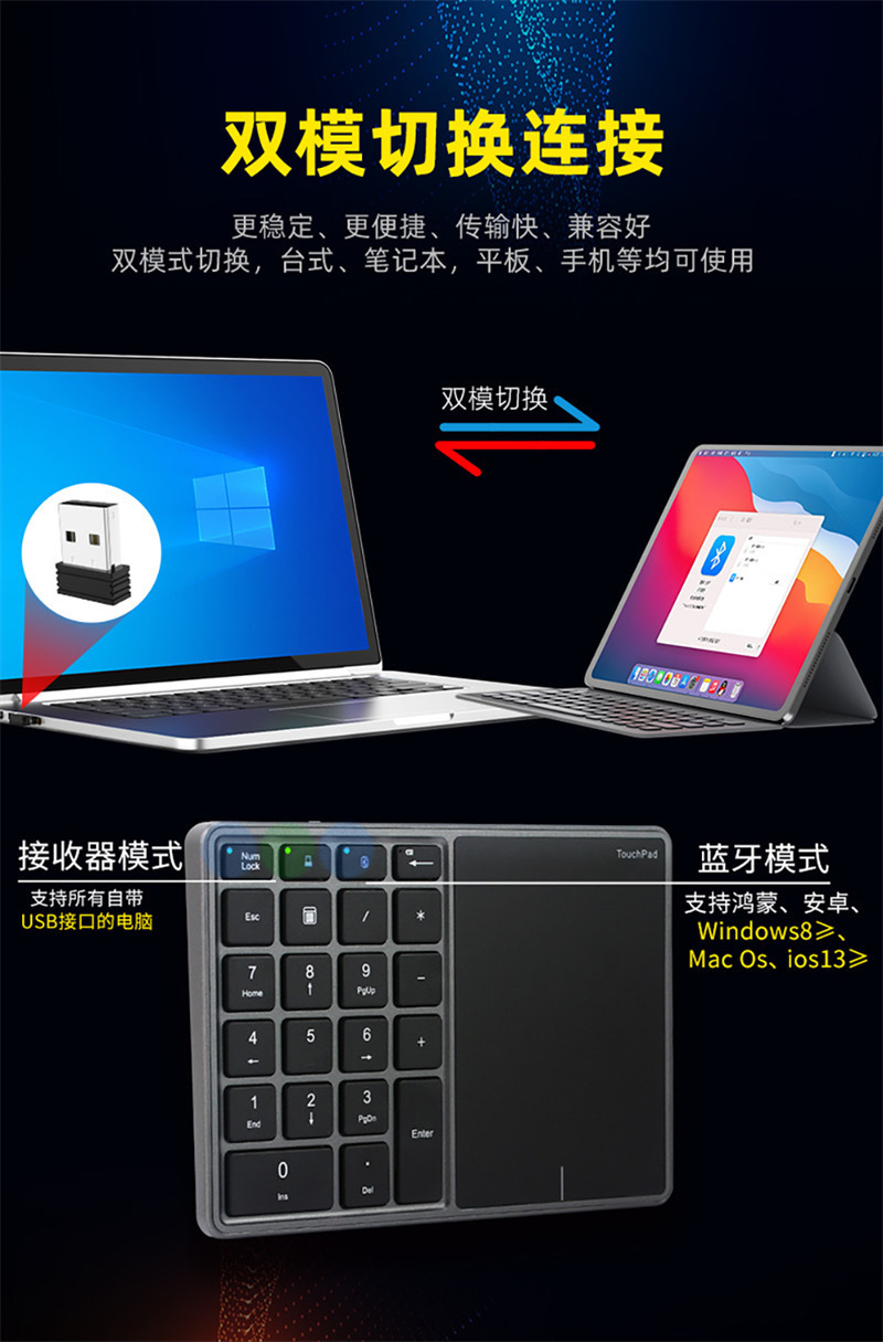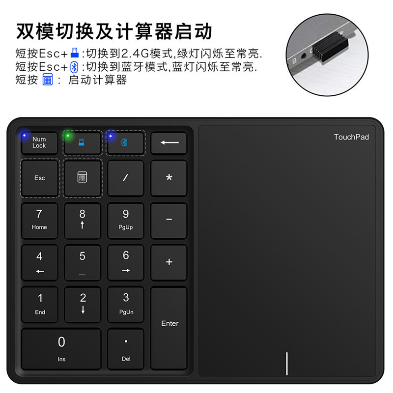 새로운 충전식 무선 블루투스 듀얼 모드 터치 패드 디지털 키보드 22 키 금융 출납원 사무실 디지털 키패드스토어 가기