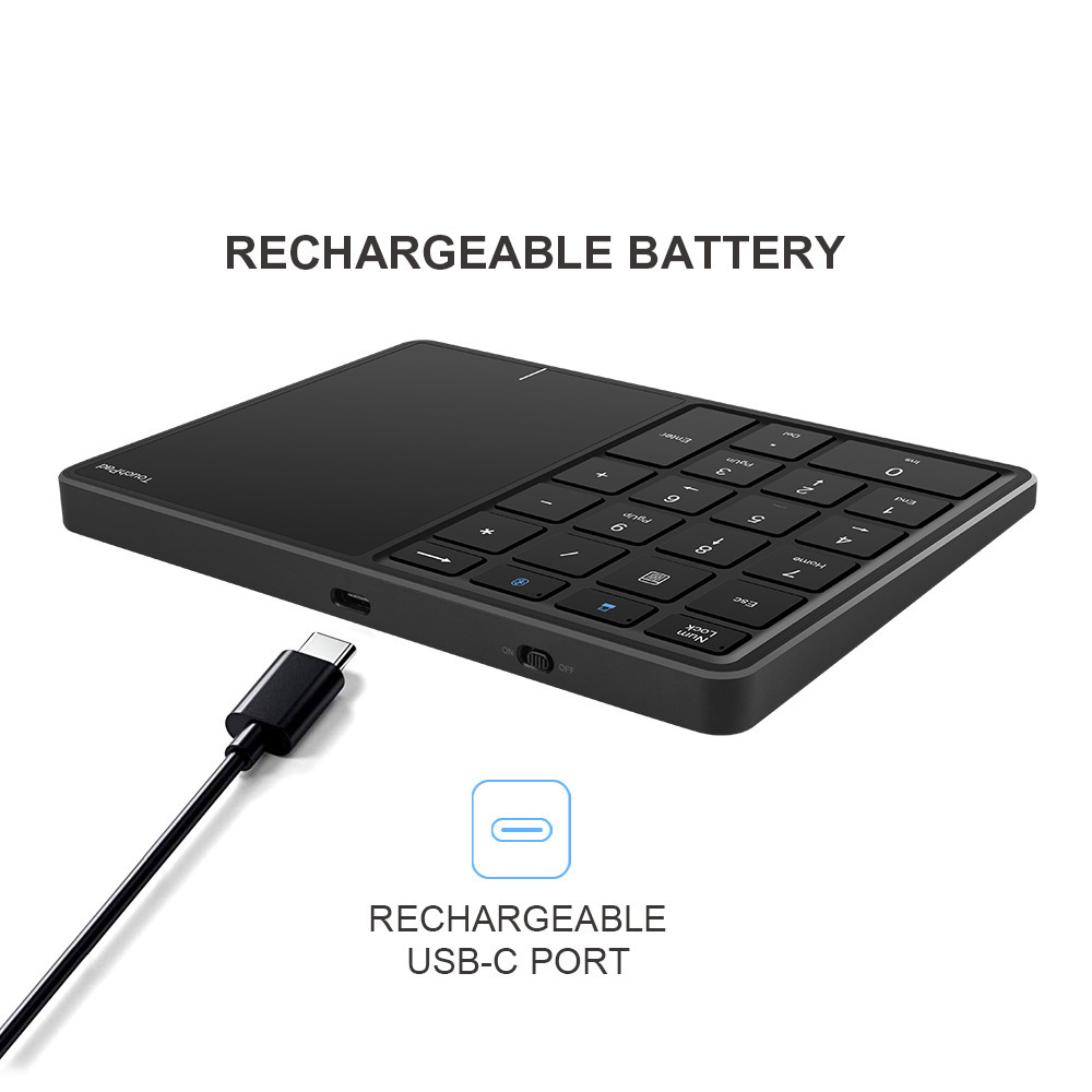 새로운 충전식 무선 블루투스 듀얼 모드 터치 패드 디지털 키보드 22 키 금융 출납원 사무실 디지털 키패드