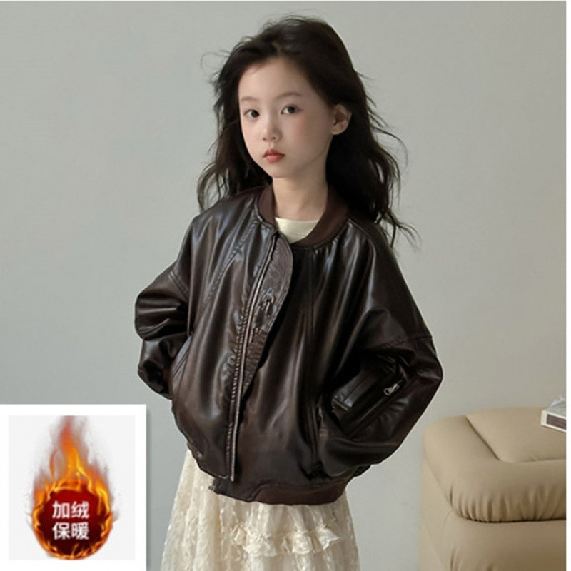 여아 코트 2024 봄 가을 새로운 스타일 유행 겉옷 짧은 가죽 코트 가을 의류 여성을위한 어린이 가을상의스토어 가기