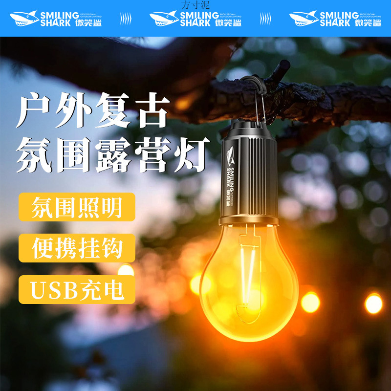 새로운 충전식 전구 모양의 교수형 램프 야외 노점 캠핑 LED 분위기 텐트 복고풍 조명