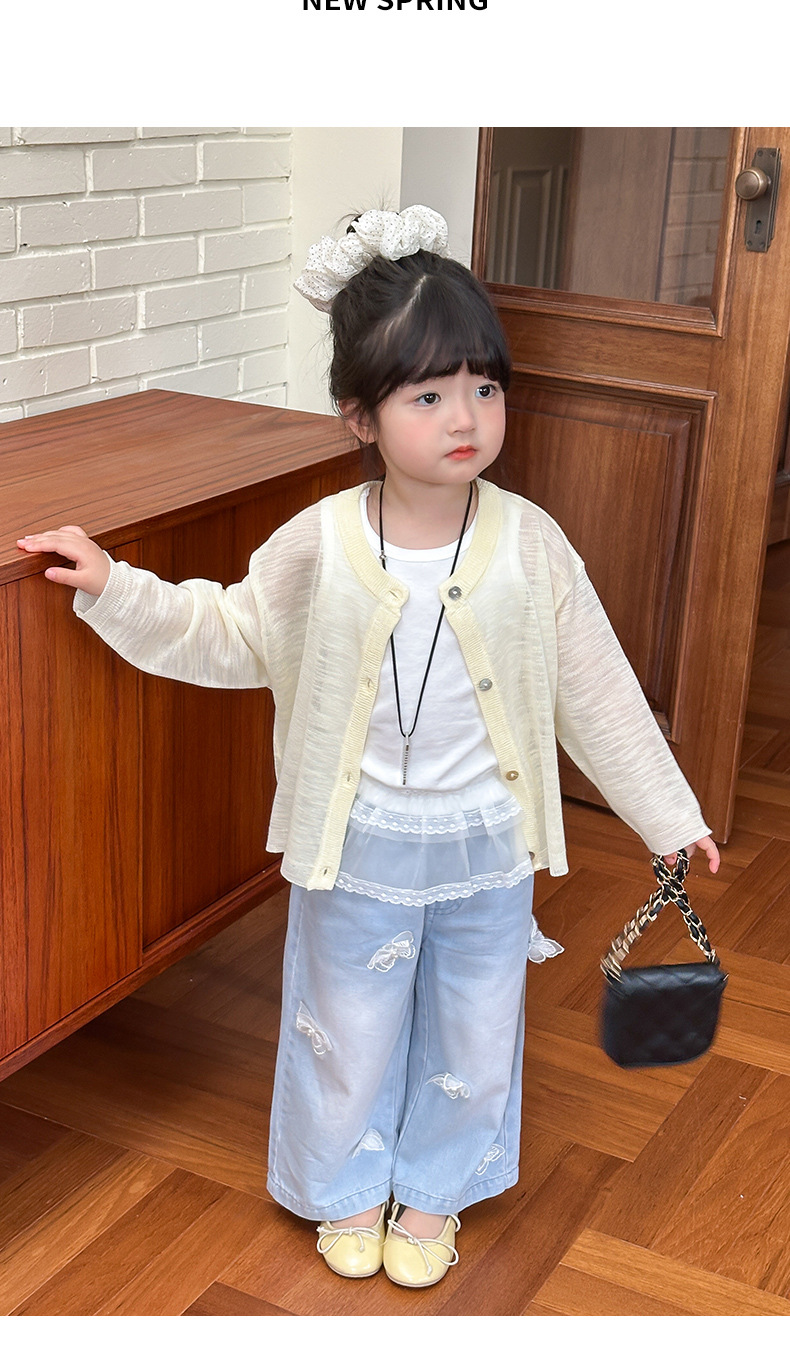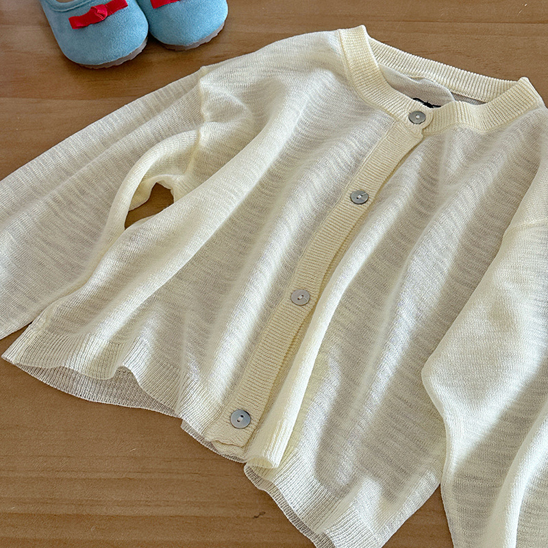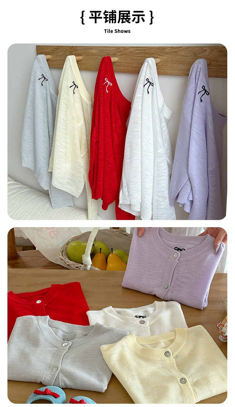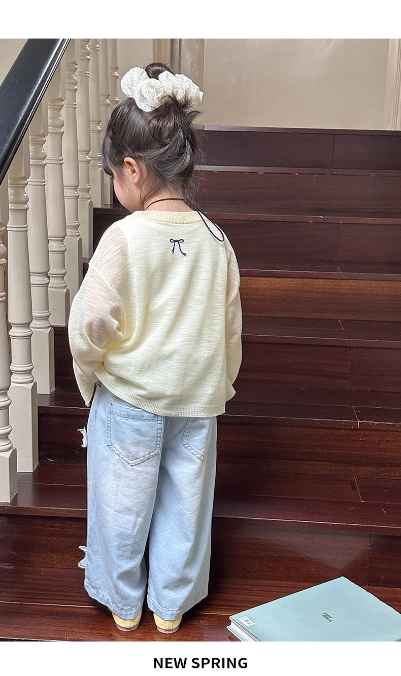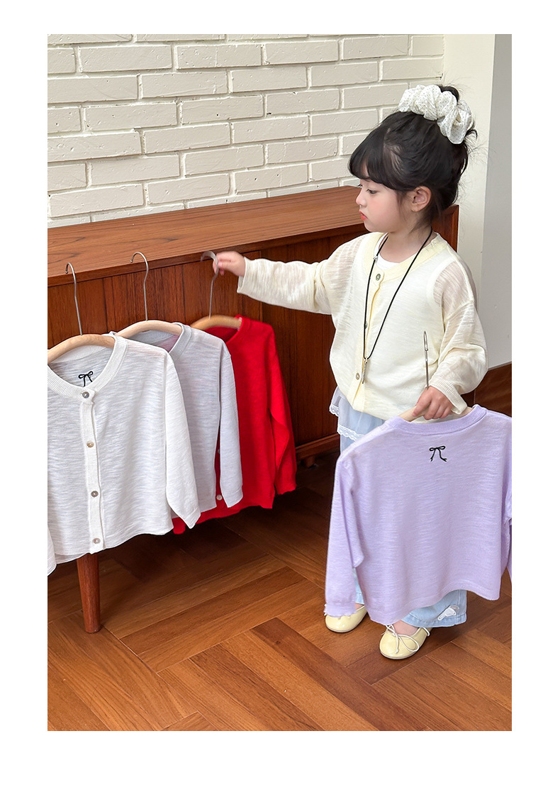 부모-자녀룩 리본 자수 니트 가디건 여아용 아이스 실크 자외선 차단 코트 숄 탑스토어 가기