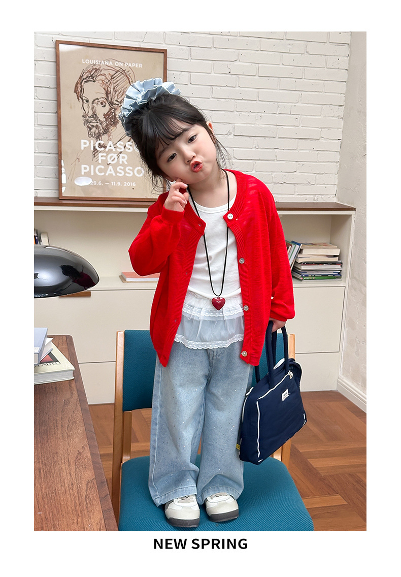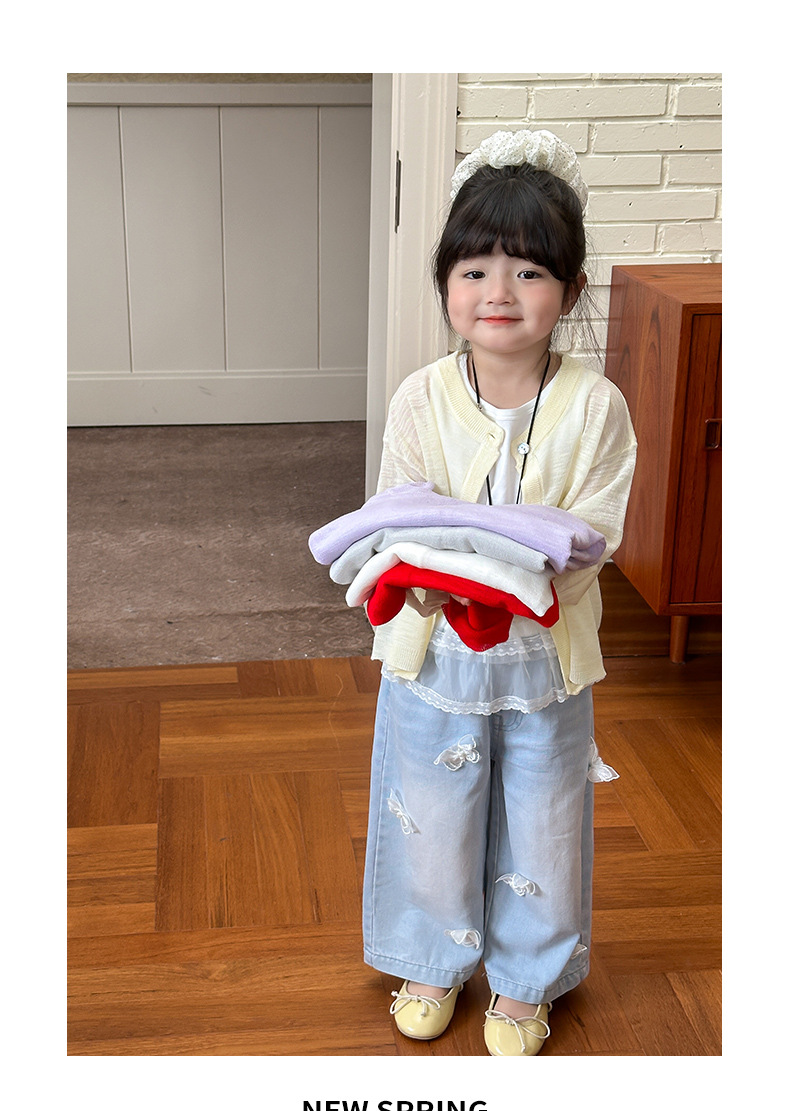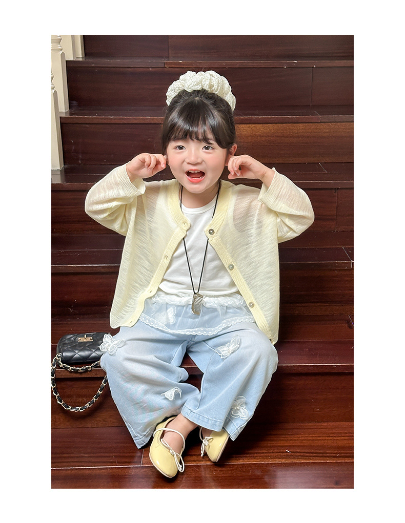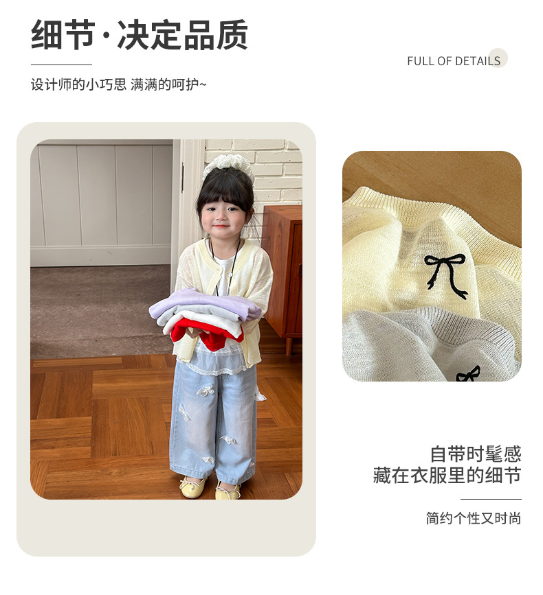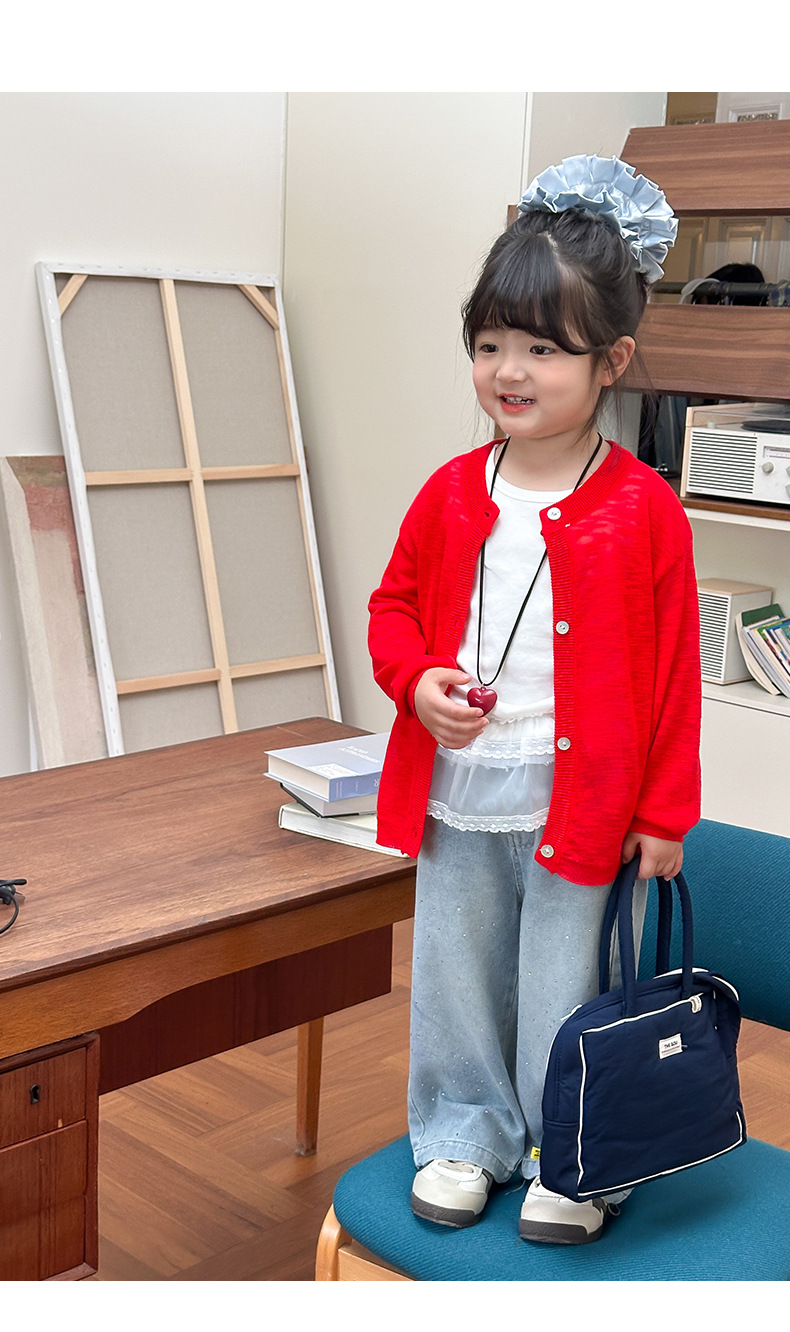 부모-자녀룩 리본 자수 니트 가디건 여아용 아이스 실크 자외선 차단 코트 숄 탑스토어 가기