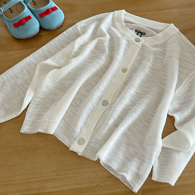 부모-자녀룩 리본 자수 니트 가디건 여아용 아이스 실크 자외선 차단 코트 숄 탑