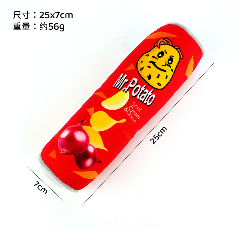 새로운 개 봉제 보컬 장난감 통조림 귀여운 부드러운 감자 칩 보컬 장난감 강아지 재미 지루함을 덜어줍니다.