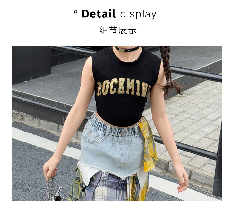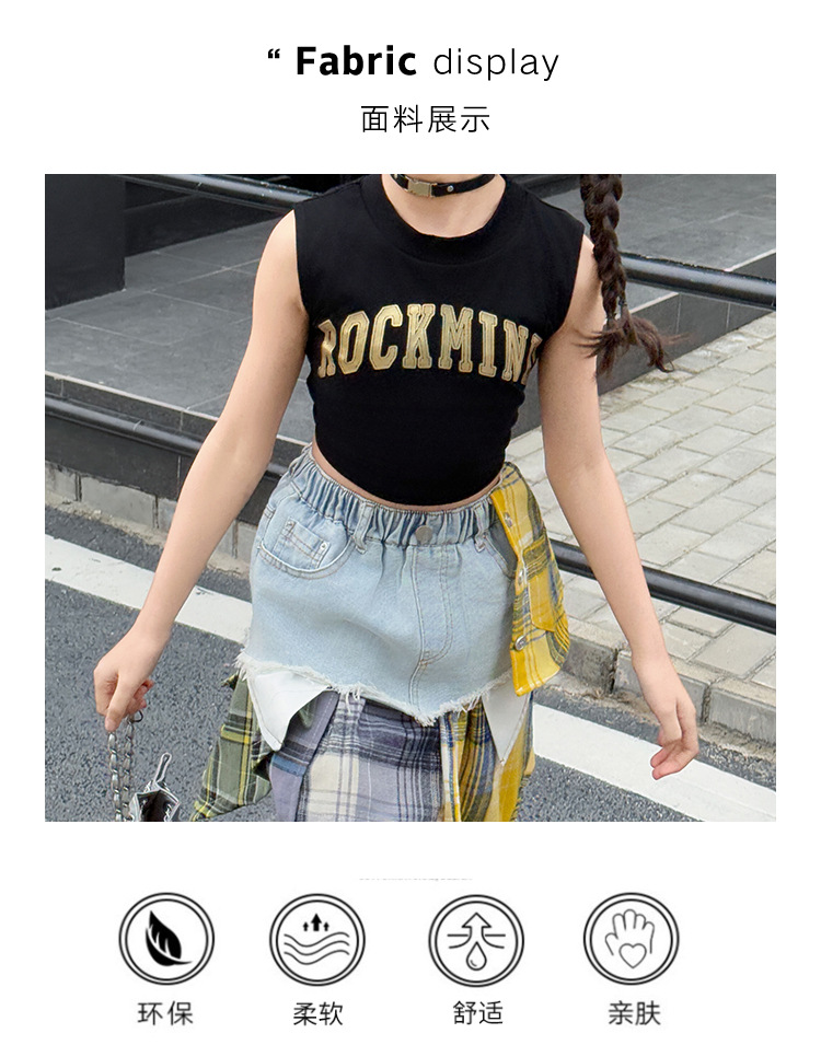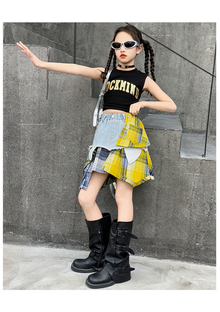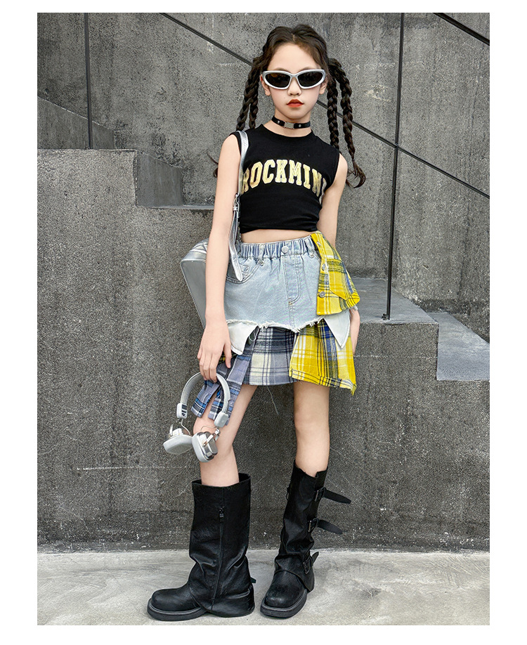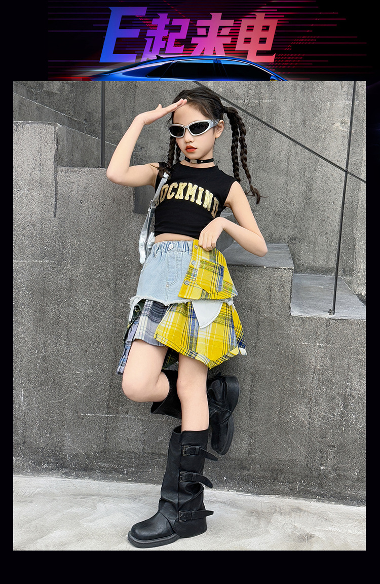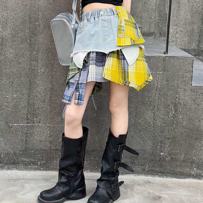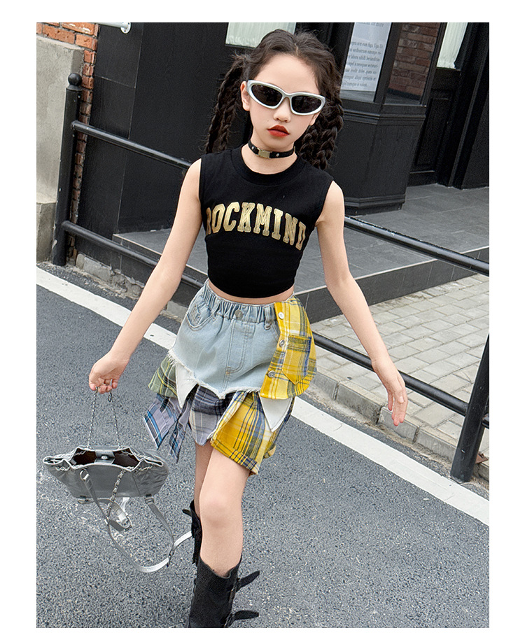 여자 여름 얇은 세트 2024 여름 새로운 반팔 티셔츠 탑 체크 무늬 스커트 투피스 세트