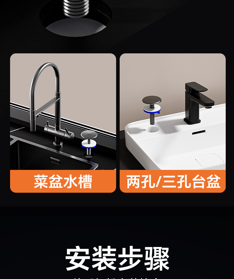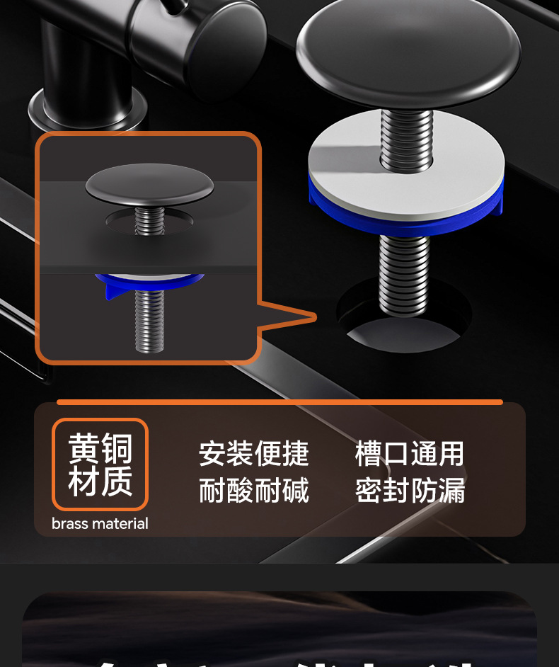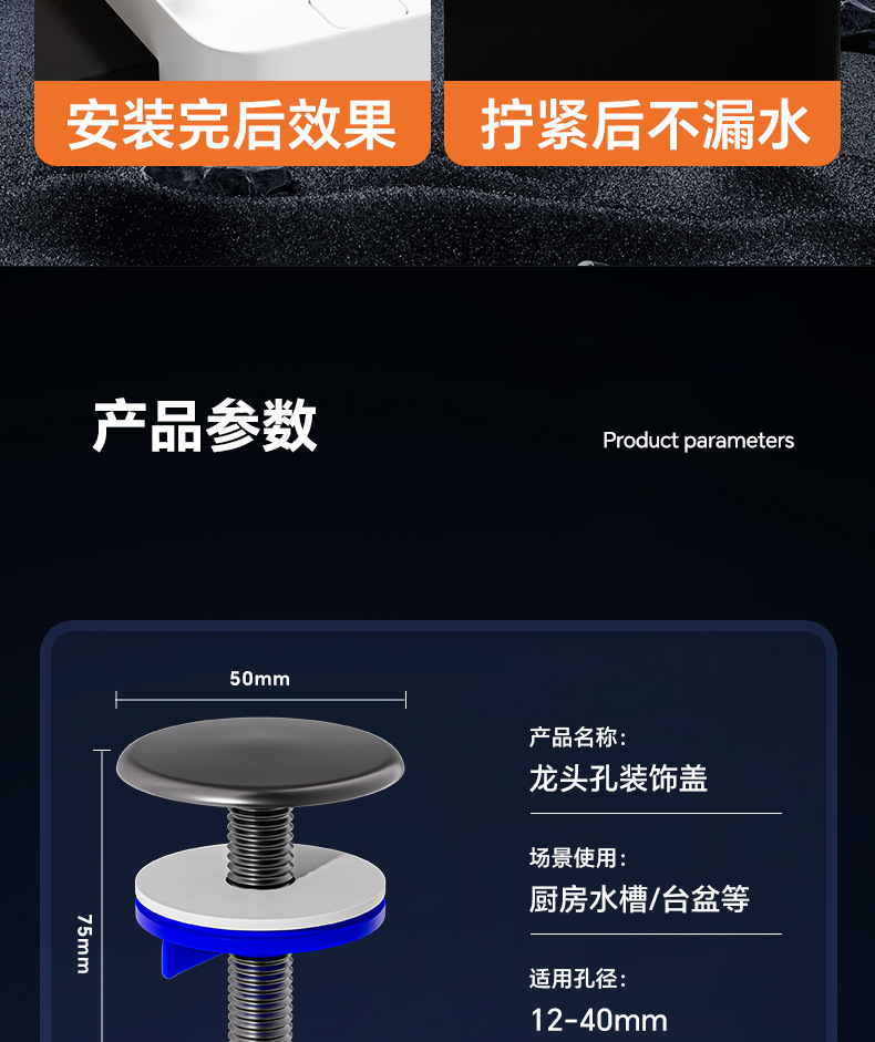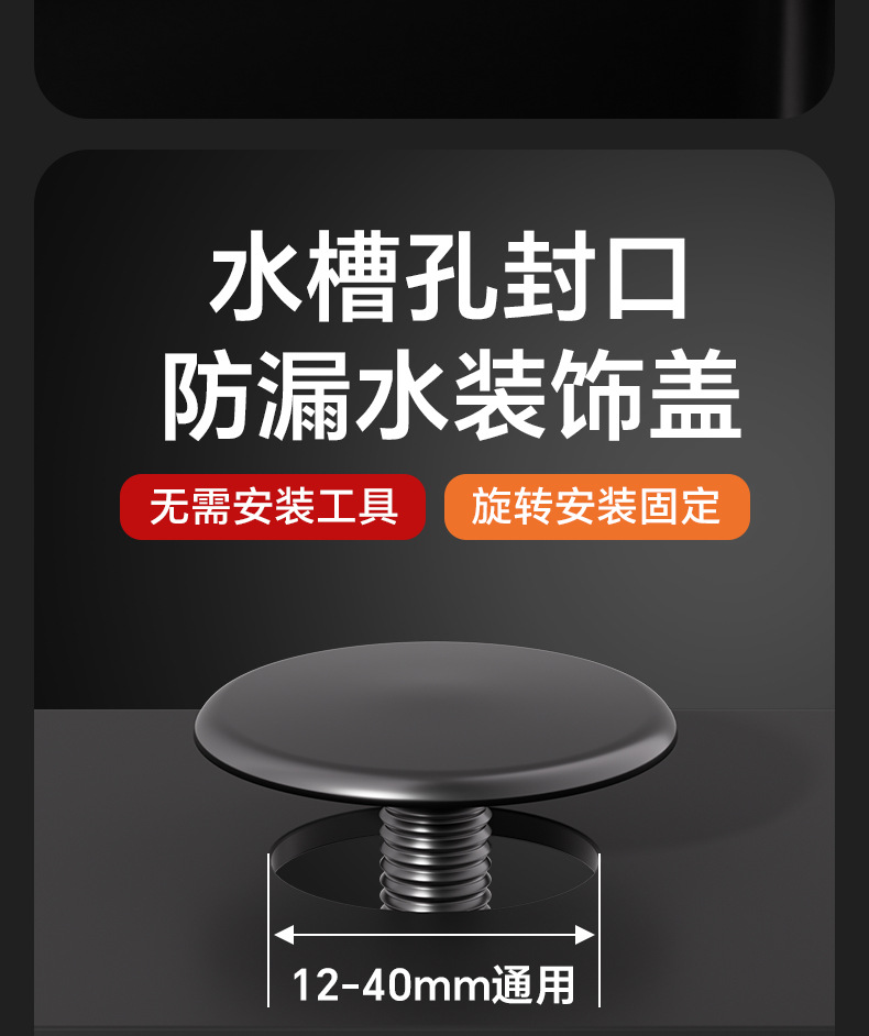 • 너트가 있는 304 싱크홀 커버, 긴 버전(28-40mm에 적용 가능)