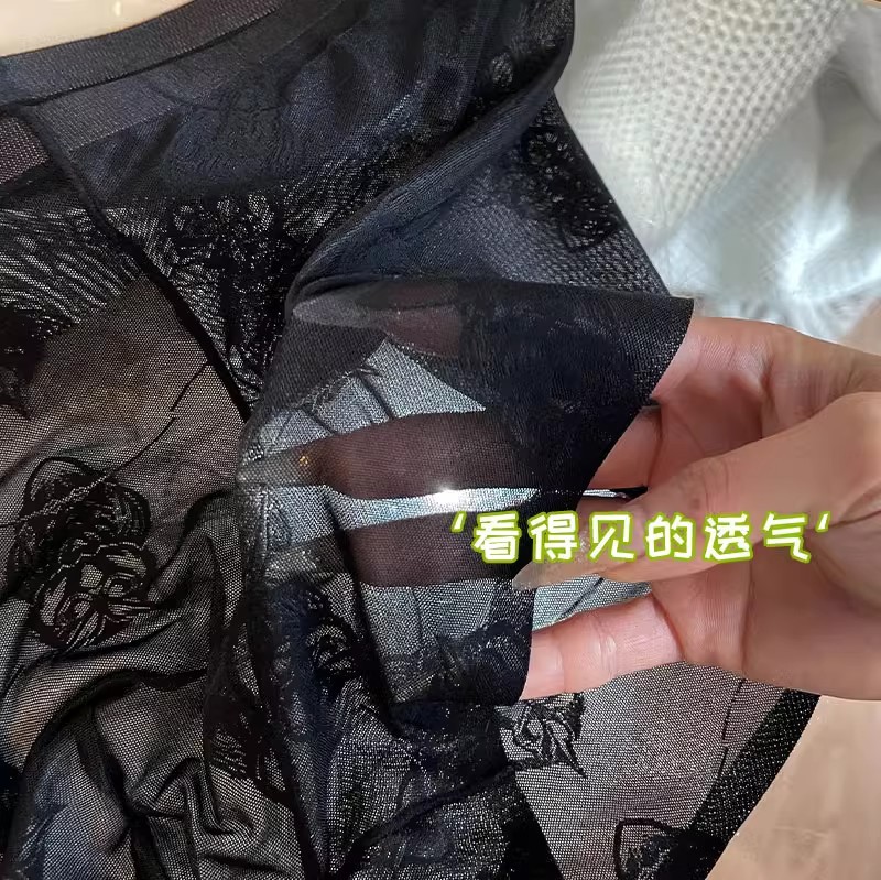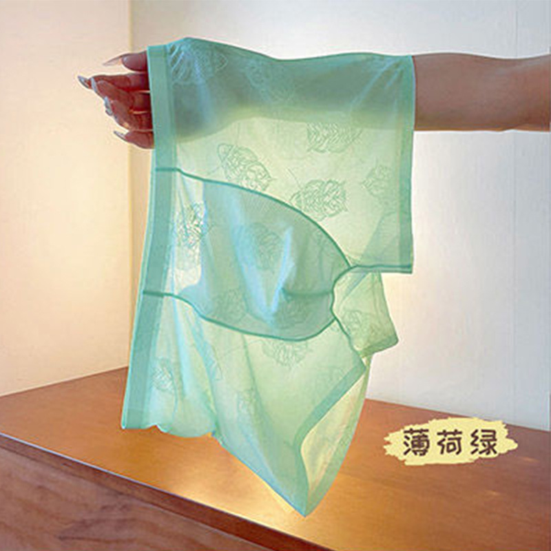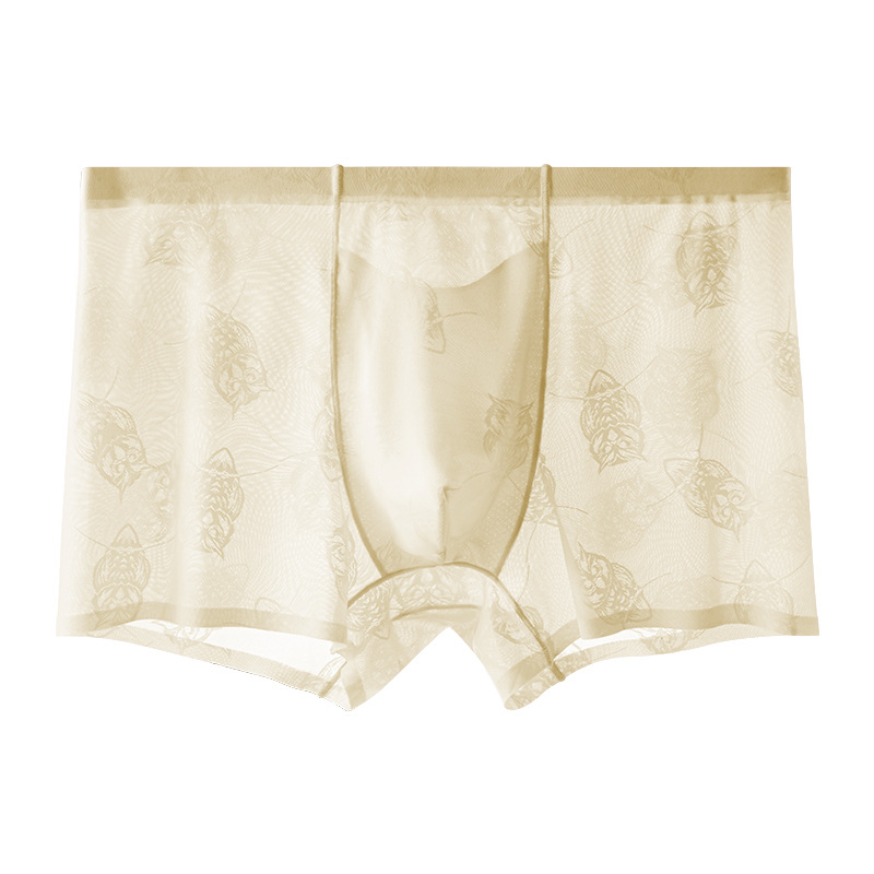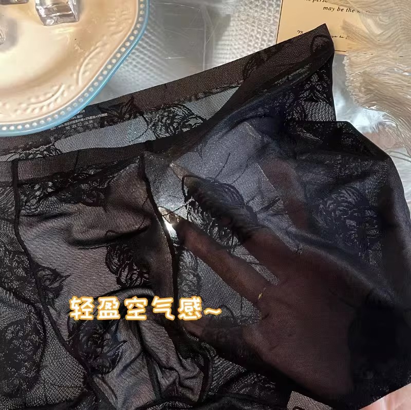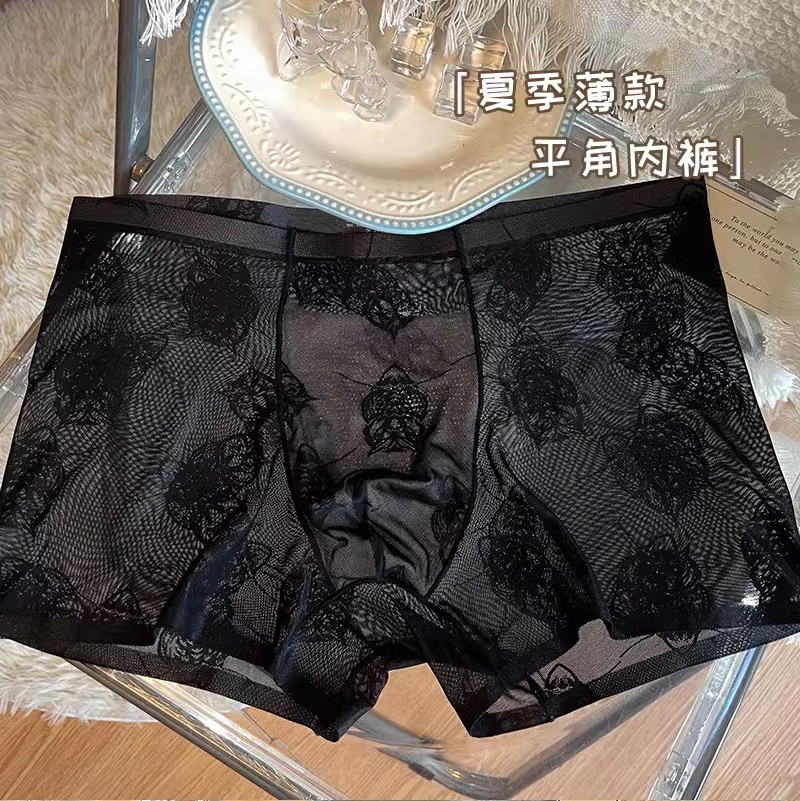 남자 아이스 실크 속옷 레이스 투명한 소년 복서 반바지 여름 얇은 메쉬 통기성 복서