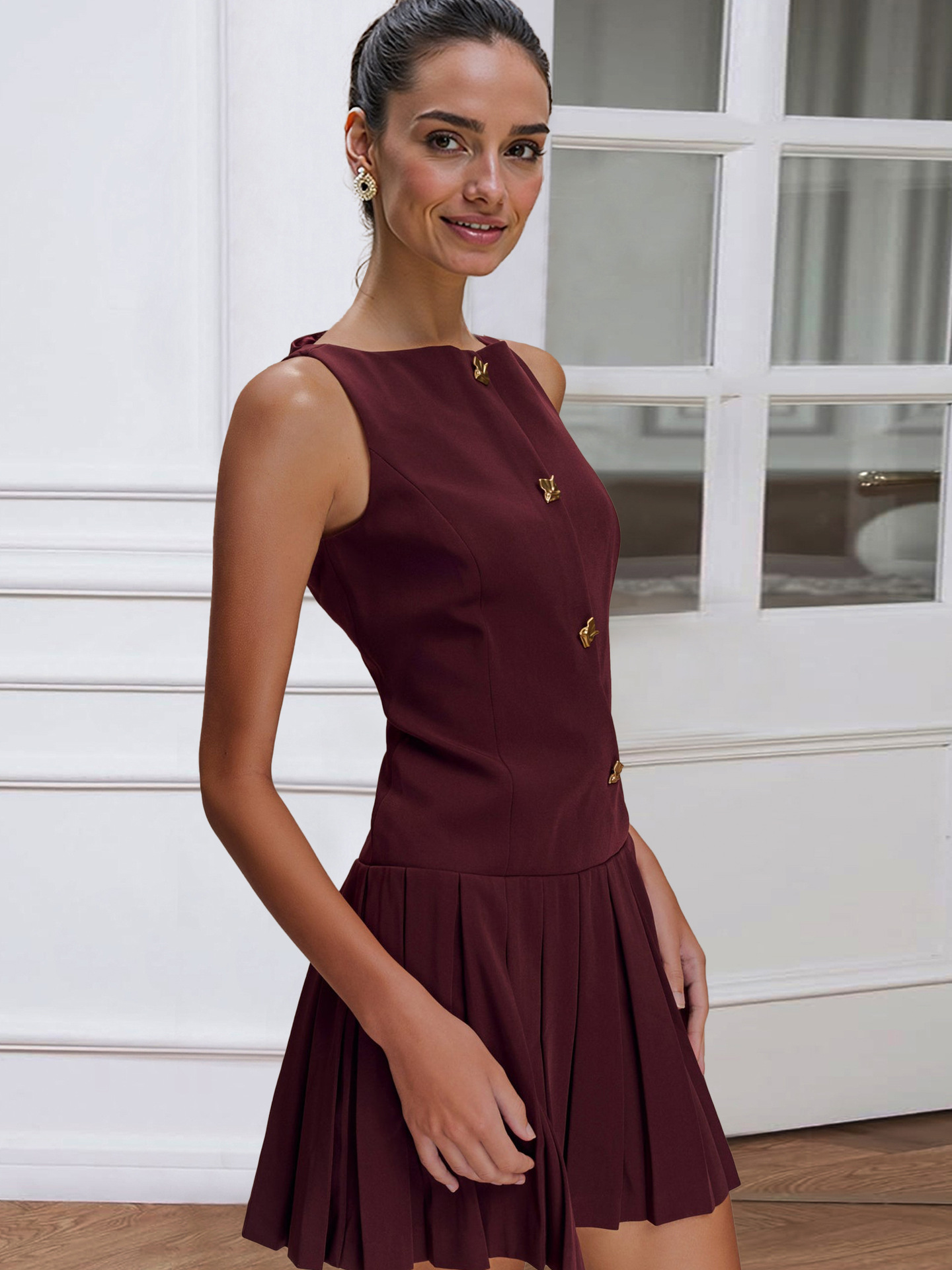 无袖褶皱迷你连衣裙将优雅与现代设计完美融合。