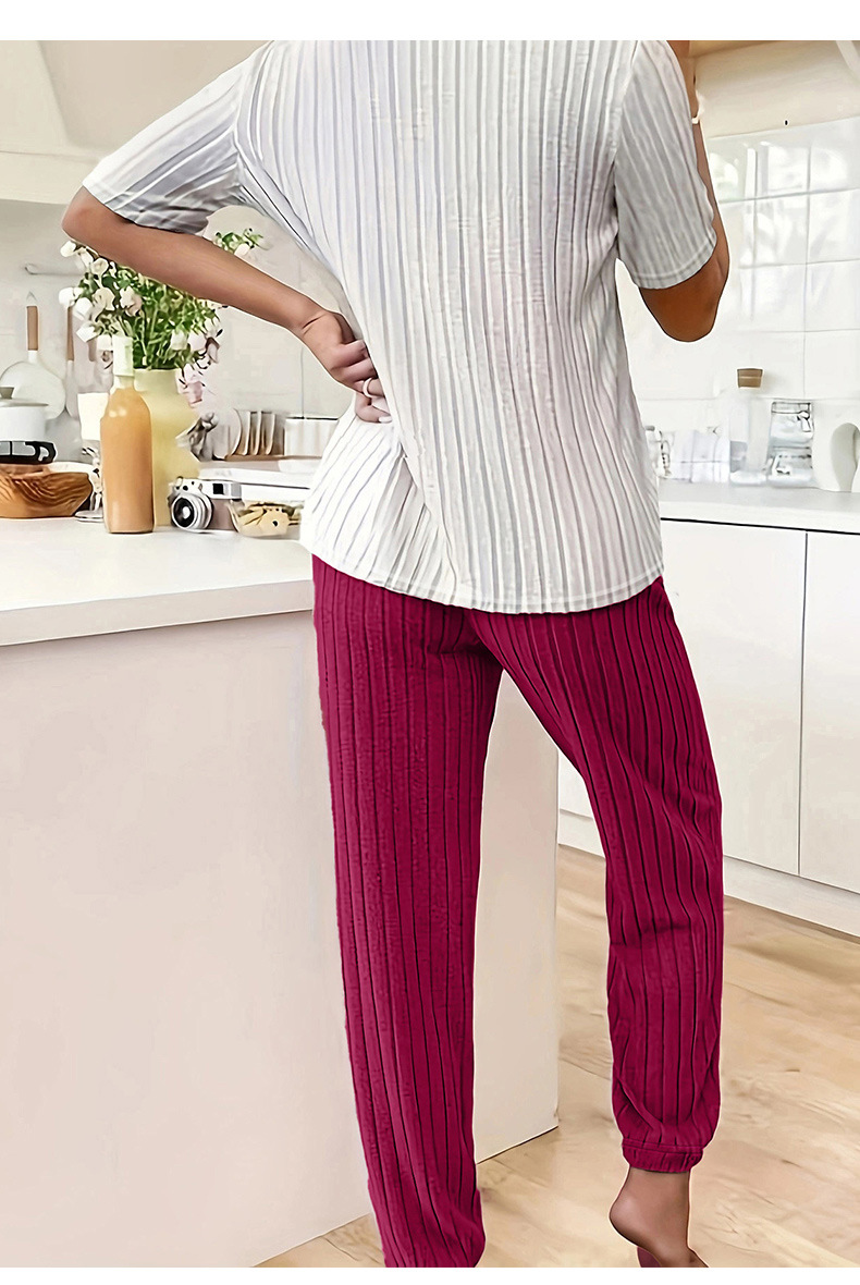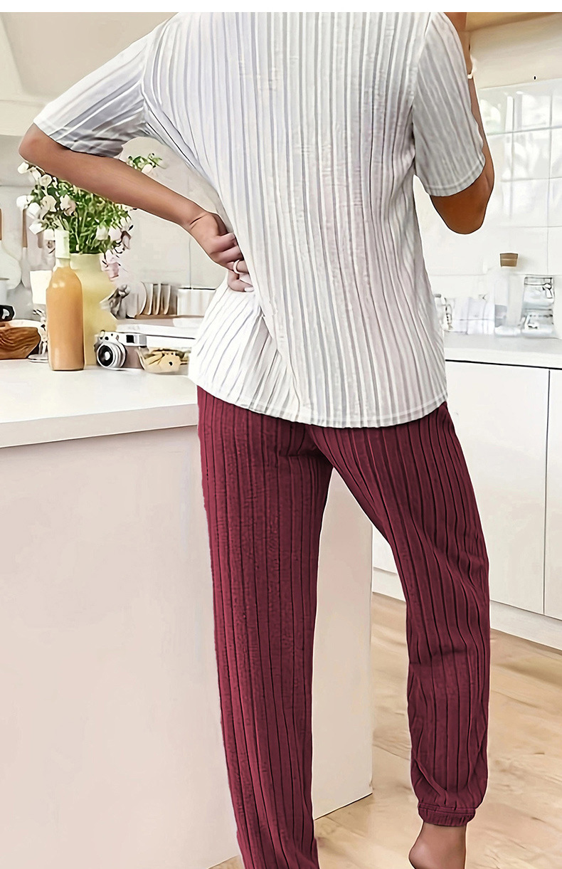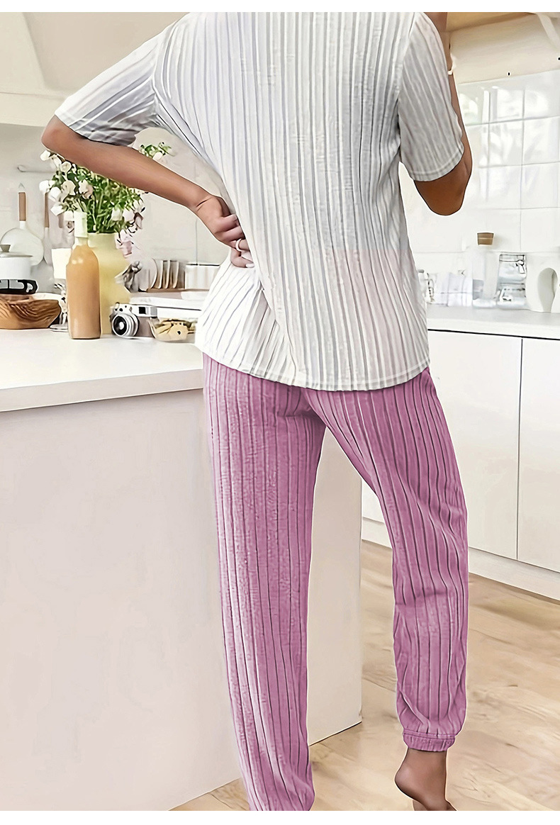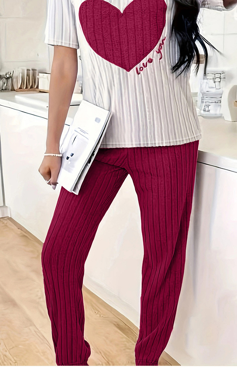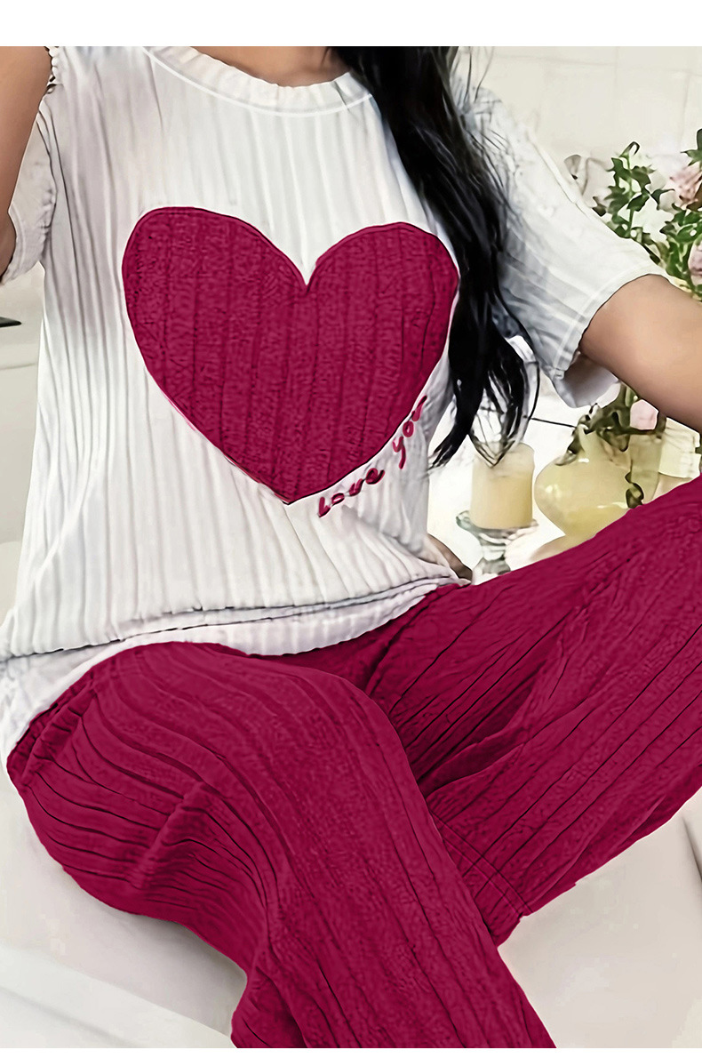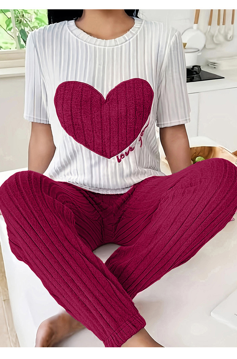 달콤한 사랑 잠옷 여성 세트 가을 새로운 우아한 둥근 목 반팔 바지 투피스 세트 편안한 홈 의류 트렌디