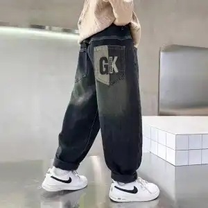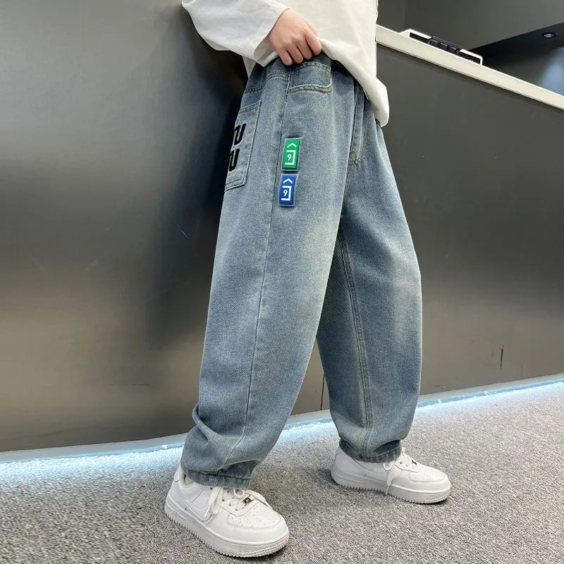 남아 청바지, 봄옷, 남아 캐주얼 바지, 루즈한 중대형 아동 바지, 가을 아동 스포츠 패션 바지, 트렌디스토어 가기