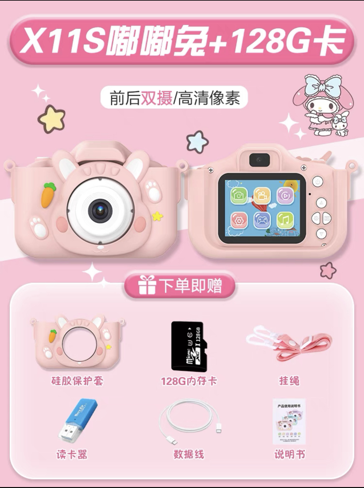 • (핑크두두투) 플래그십 HD 듀얼 카메라 + 128G 메모리 카드 패키지