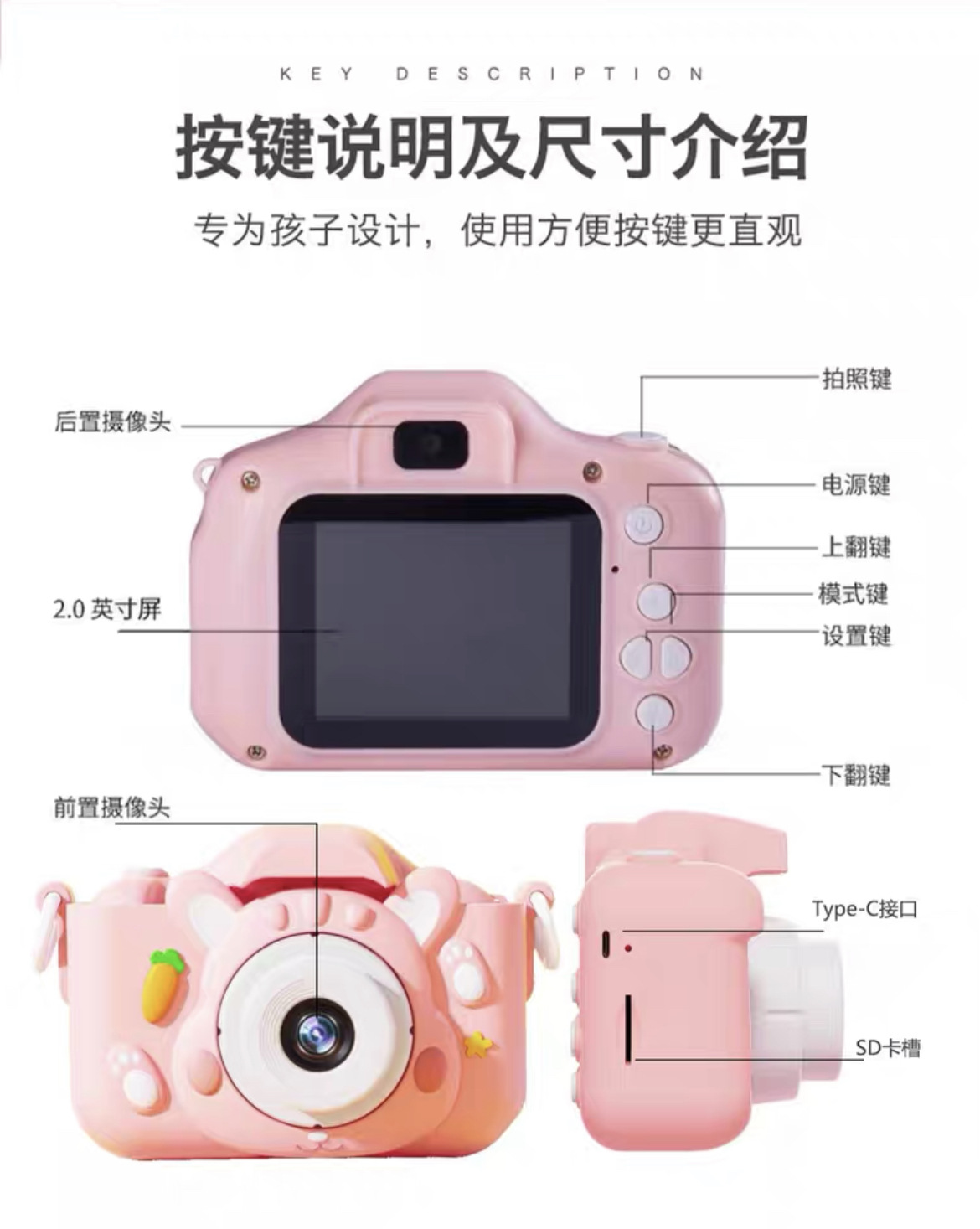 어린이 카메라는 사진과 비디오를 찍을 수 있으며, 소형 SLR 즉석 카메라 장난감 디지털 어린이 선물입니다.