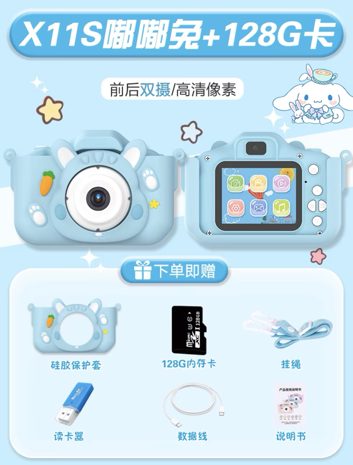 • (Zi Dudu Rabbit) 플래그십 HD 듀얼 카메라 + 128G 메모리 카드 패키지