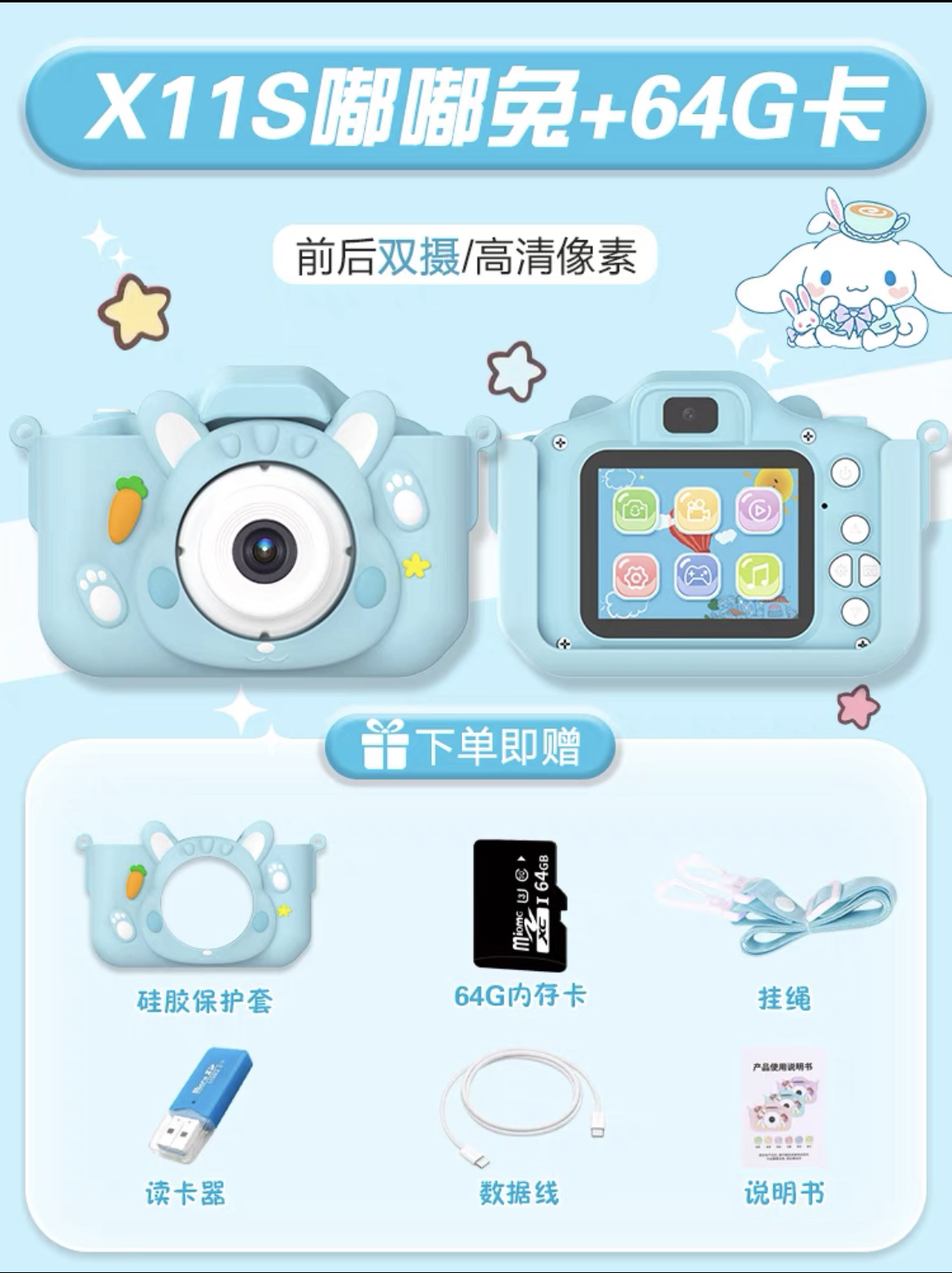 • (Zi Dudu Rabbit) 플래그십 HD 듀얼 카메라 + 64G 메모리 카드 패키지