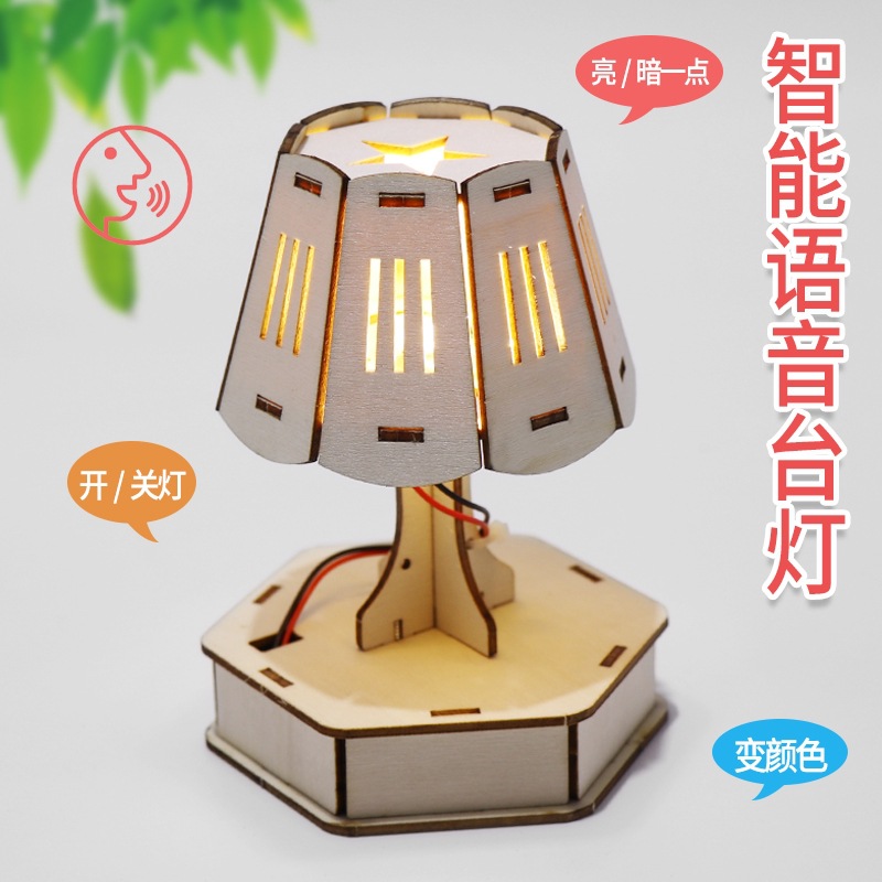 지능형 음성 책상 램프 diy 교육 보조 어린이 과학 기술 생산 작은 발명품 수제 모델 과학 실험 재료 패키지스토어 가기