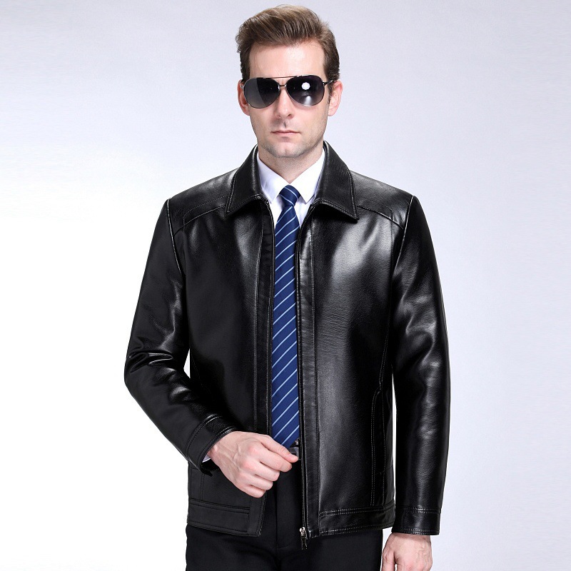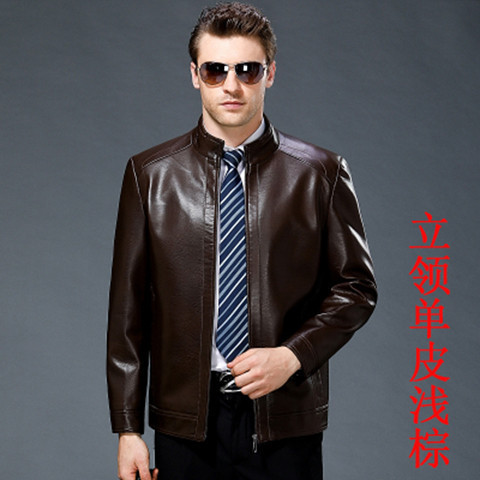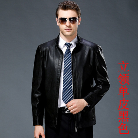 중년을위한 수직 칼라 가죽 자켓과 봄과 가을 가죽 남성용 짧은 양가죽 자켓