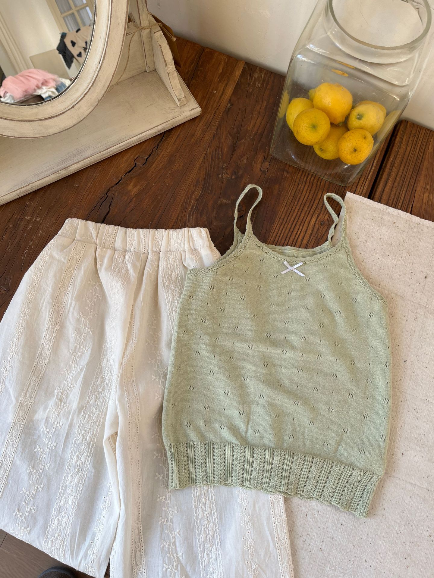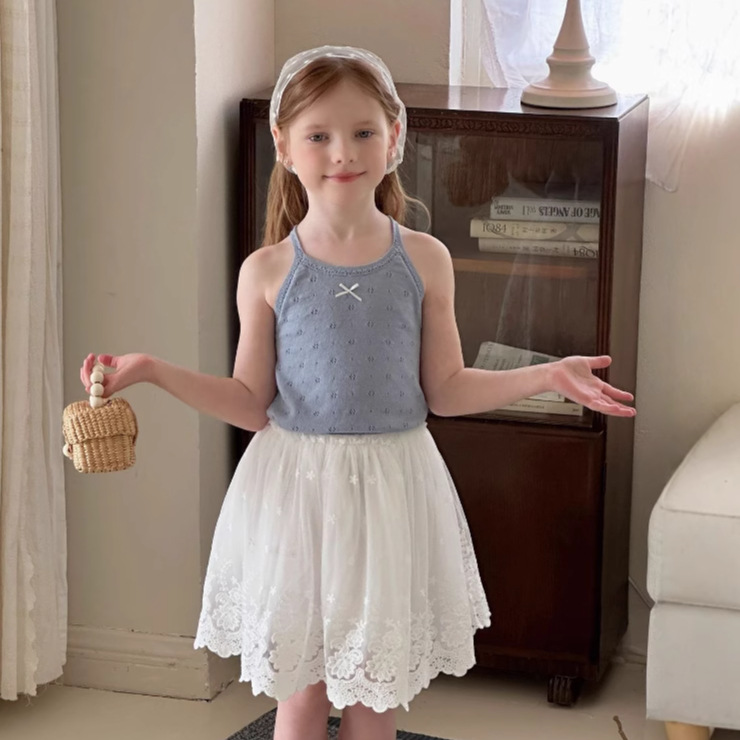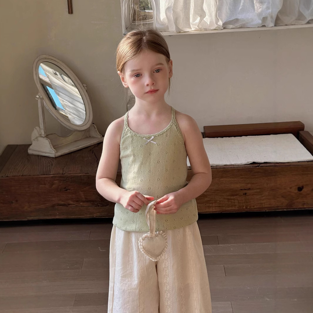 여자 면 조끼 2025 여름 새로운 한국 스타일 어린이 달콤한 슬링 아기의 활 니트 탑
