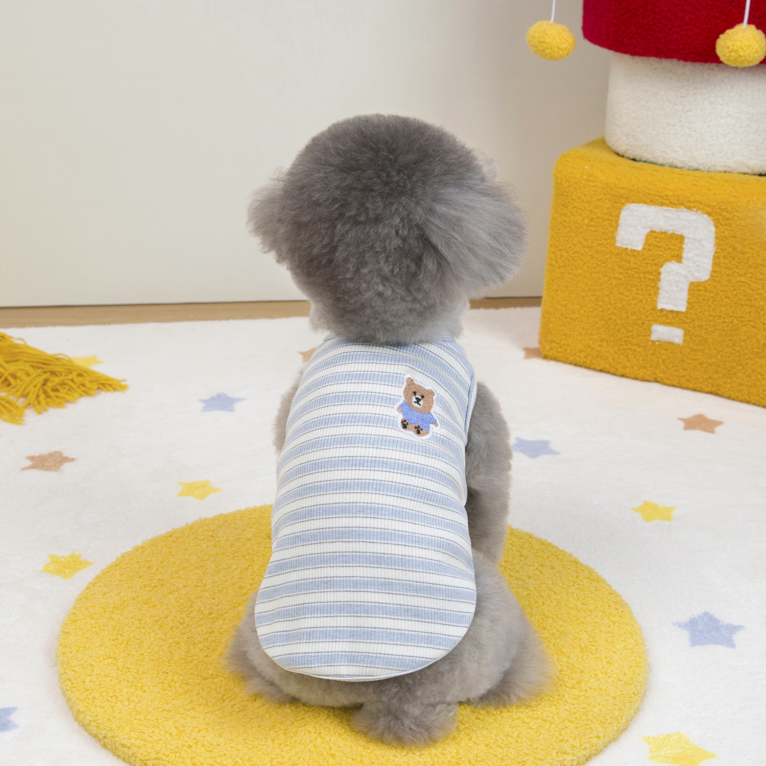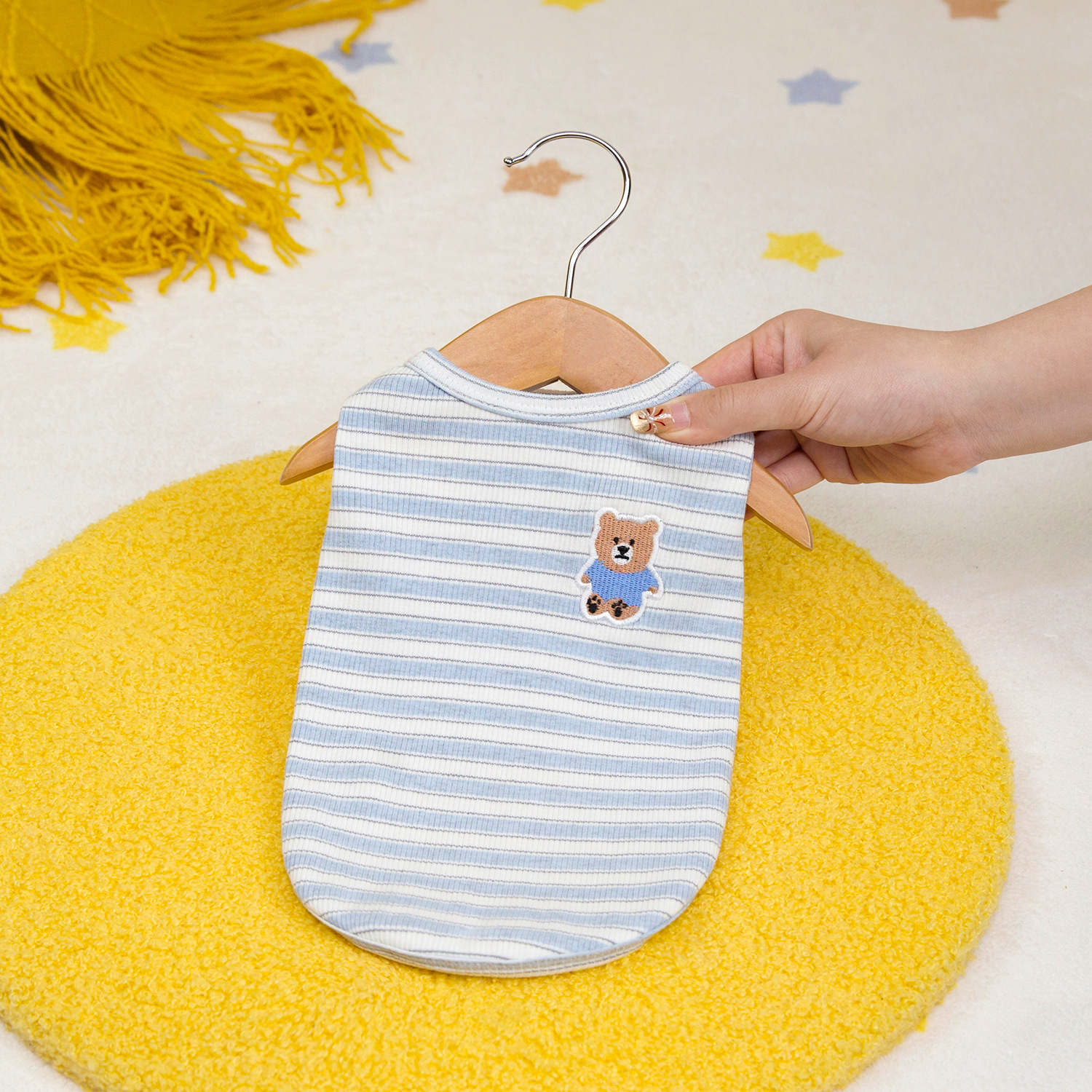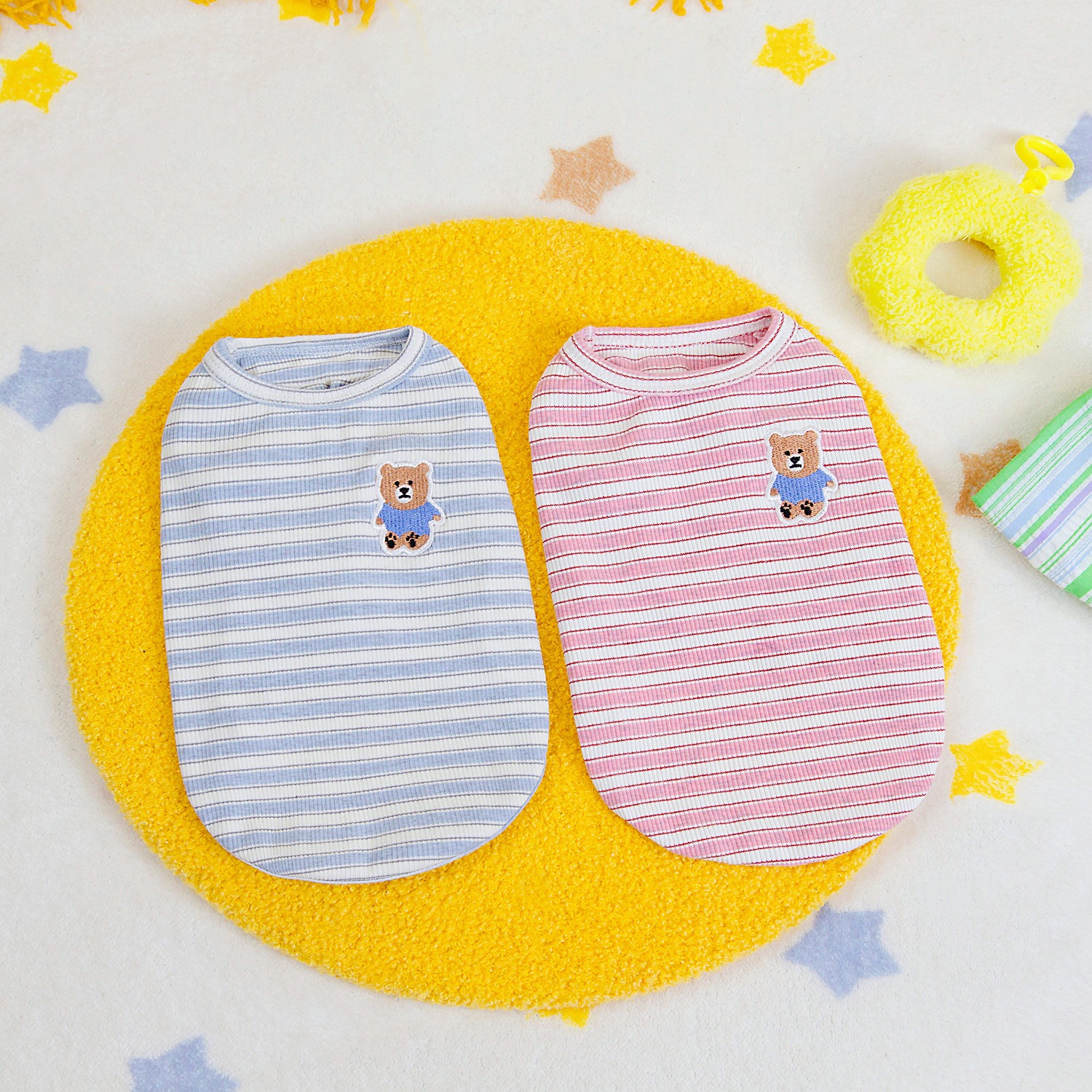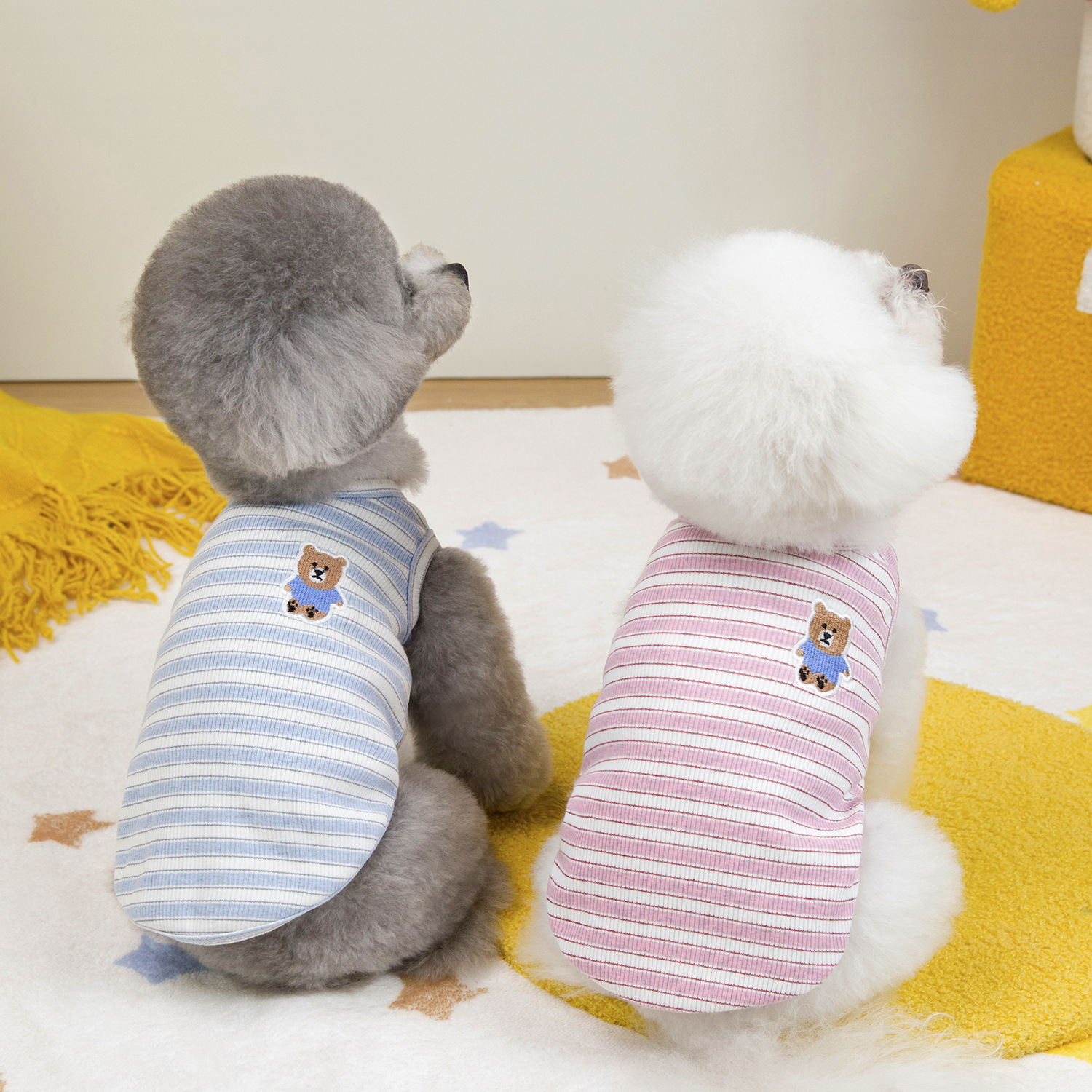 고양이 옷 봄 여름 개 의류 봄 여름 도매 애완 동물 의류 도매 애완 동물 용품 25 줄무늬 조끼 자수 곰