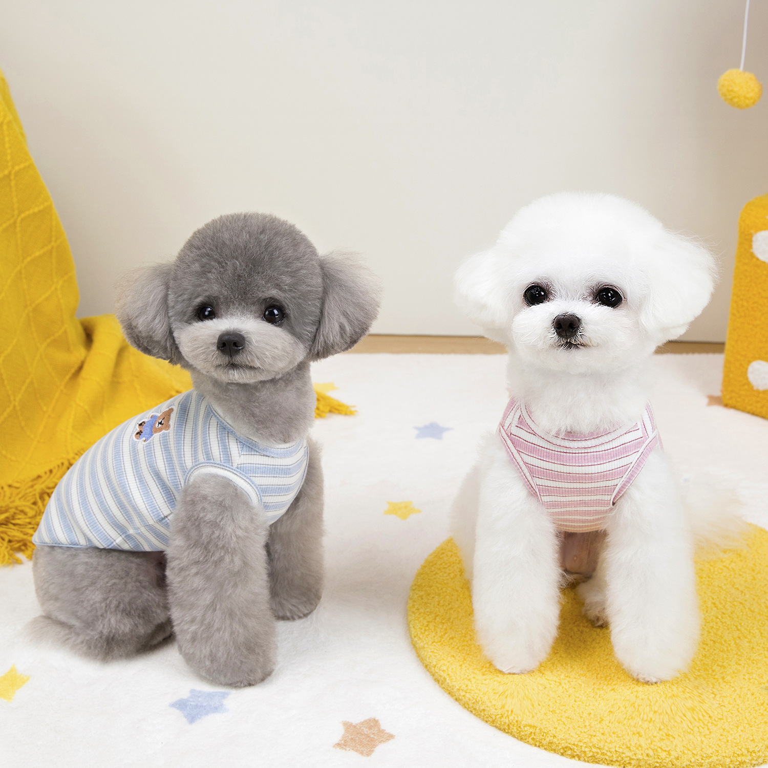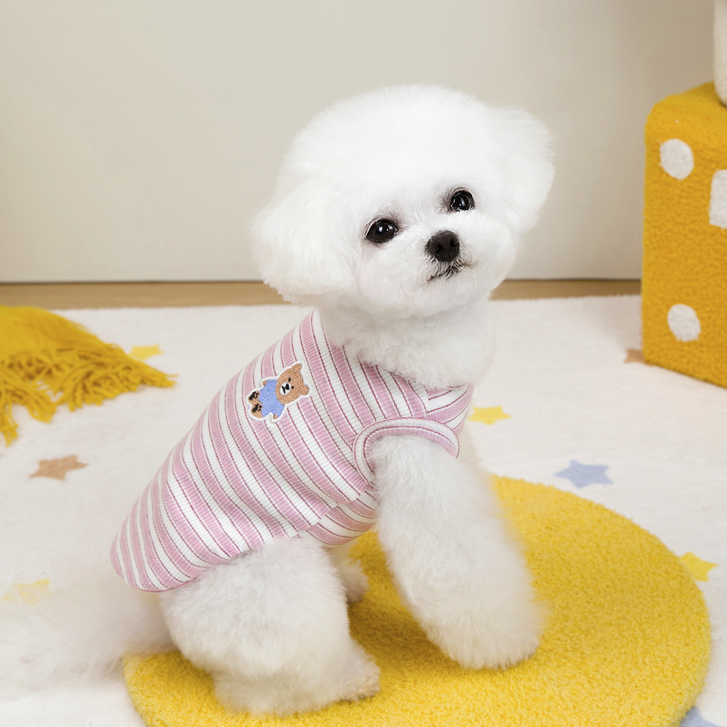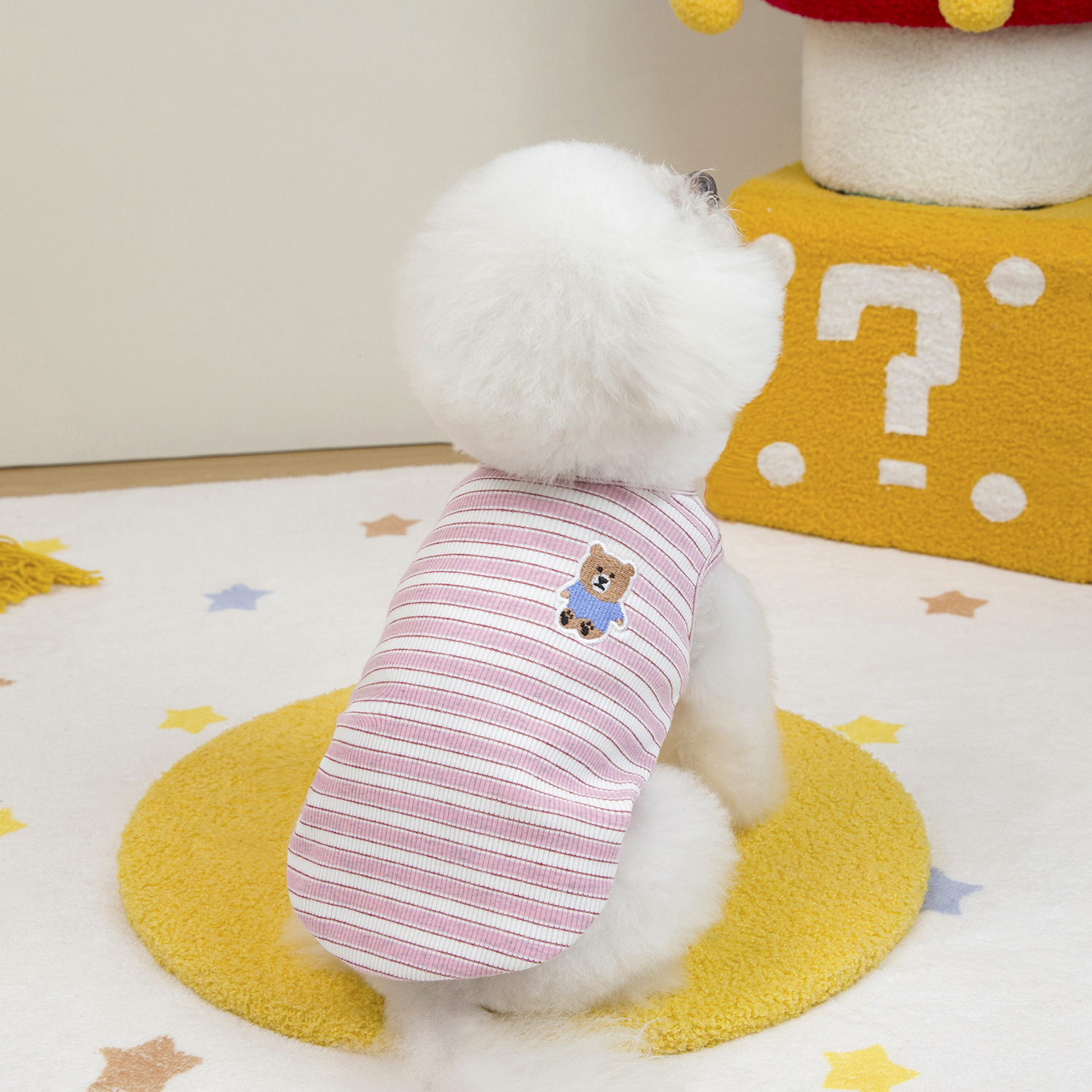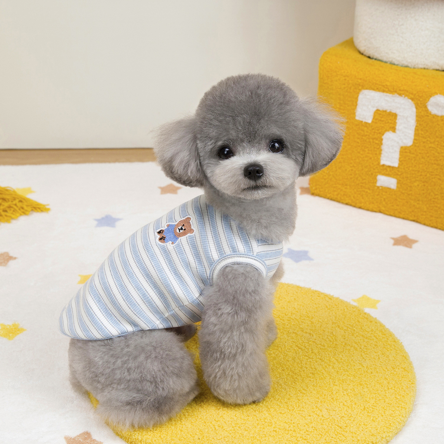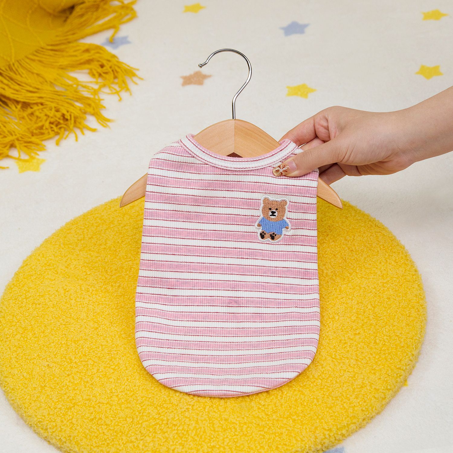 고양이 옷 봄 여름 개 의류 봄 여름 도매 애완 동물 의류 도매 애완 동물 용품 25 줄무늬 조끼 자수 곰
