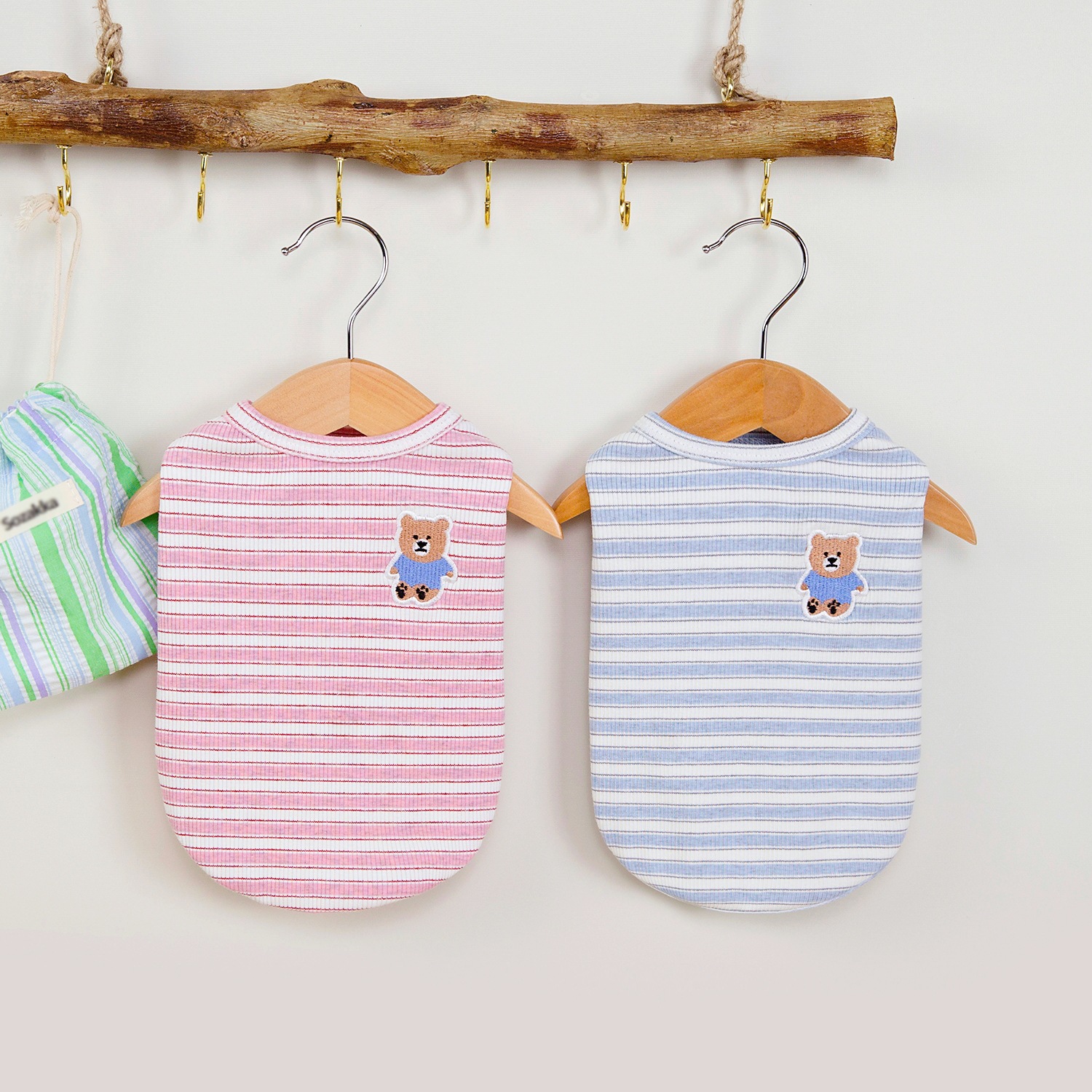 고양이 옷 봄 여름 개 의류 봄 여름 도매 애완 동물 의류 도매 애완 동물 용품 25 줄무늬 조끼 자수 곰스토어 가기