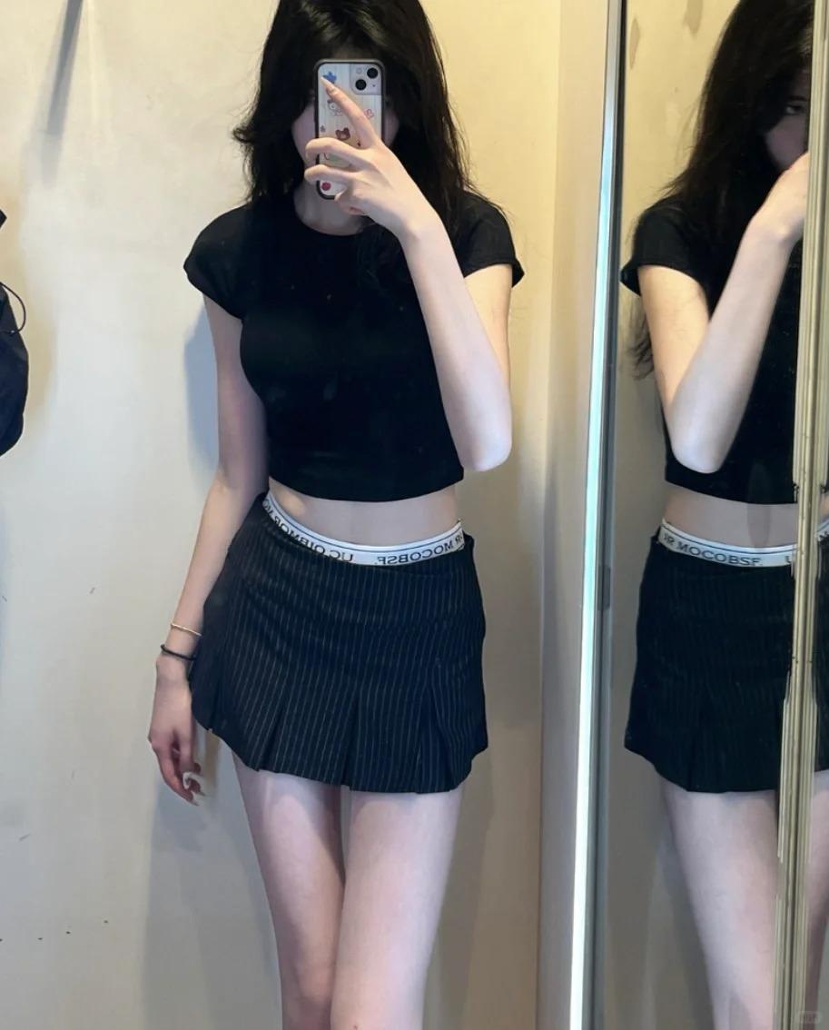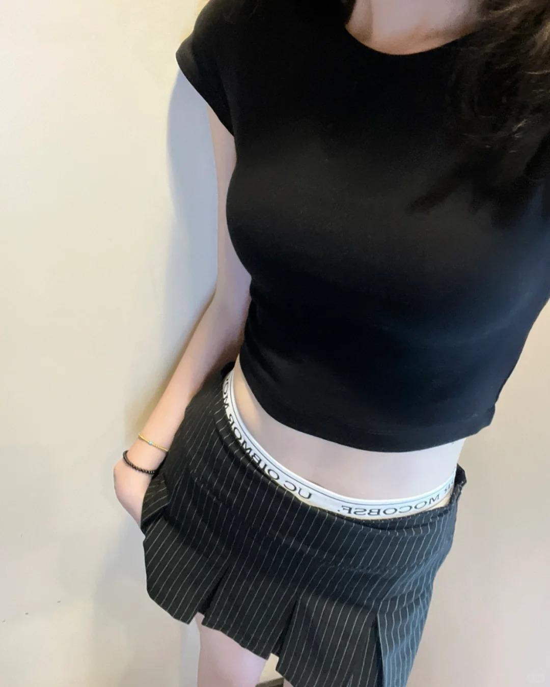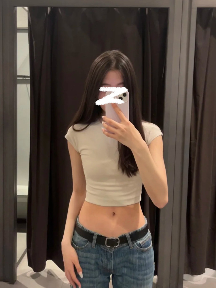 내 근육 좋은 * 여성 의류 시리즈 Za 가족 우유 가죽 티셔츠, 배꼽에 노출 된 짧은 재킷 뜨거운 소녀 슬림 작은 파리 소매 라운드스토어 가기