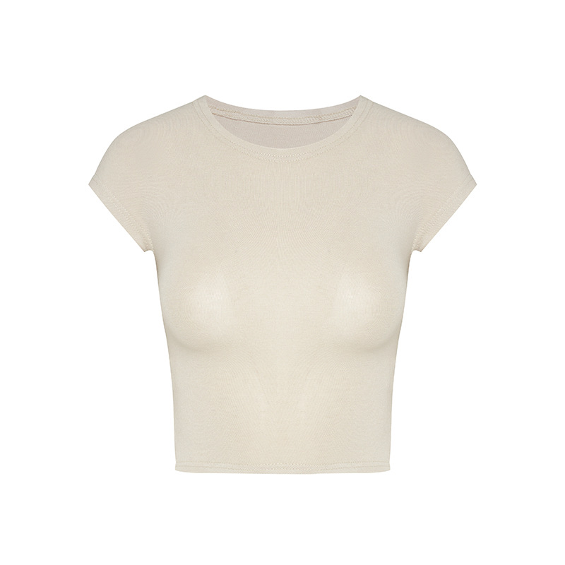 내 근육 좋은 * 여성 의류 시리즈 Za 가족 우유 가죽 티셔츠, 배꼽에 노출 된 짧은 재킷 뜨거운 소녀 슬림 작은 파리 소매 라운드