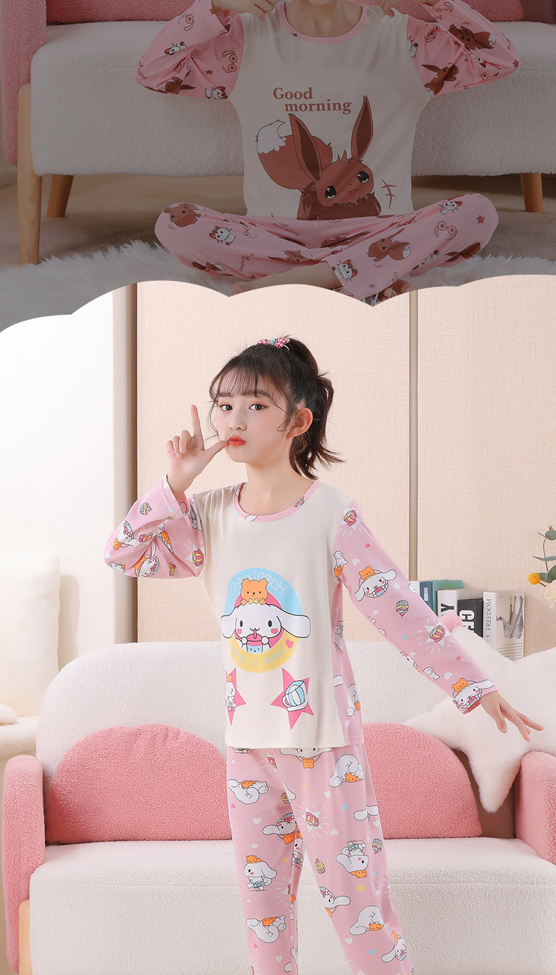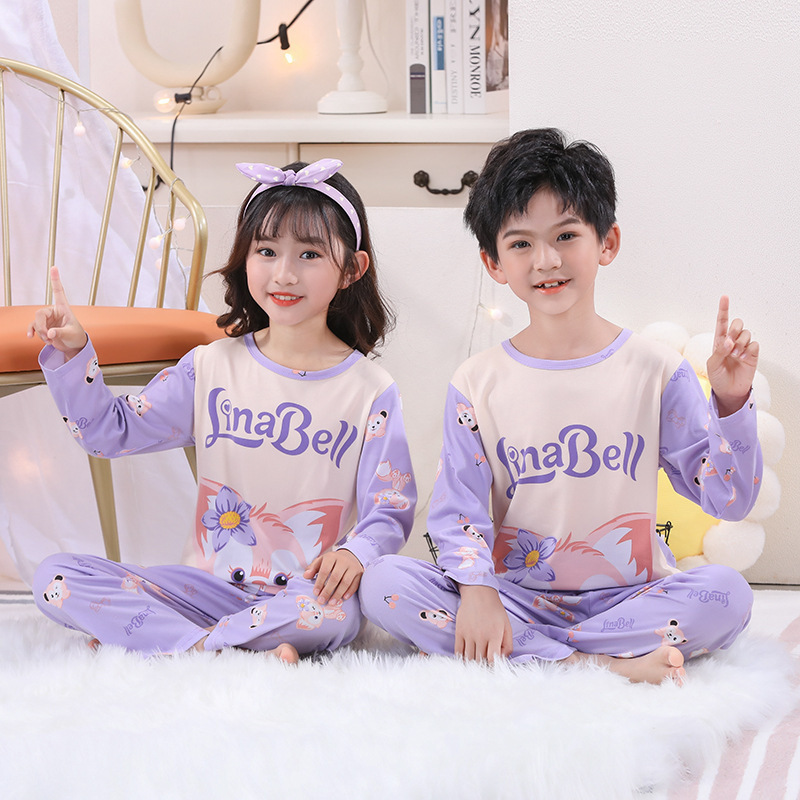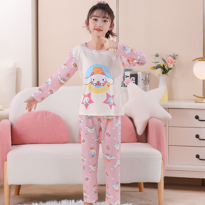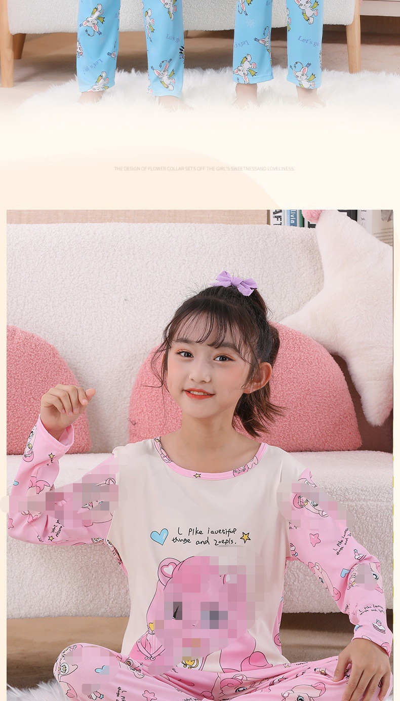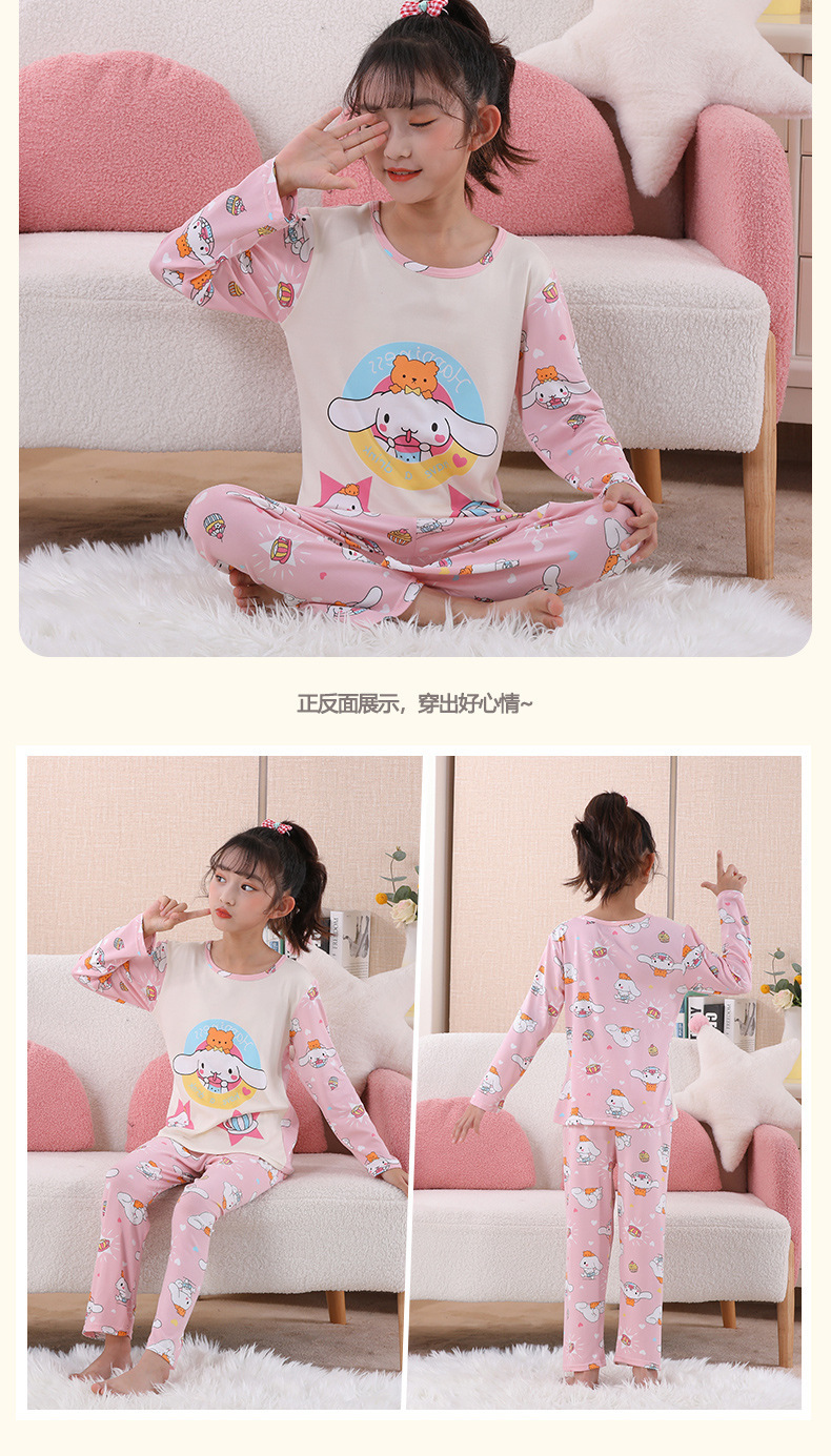 여자 잠옷 봄과 가을 만화 라운드 넥 풀오버 긴 소매 가정 의류 세트 큰 어린이 아기 소녀 가정 의류스토어 가기