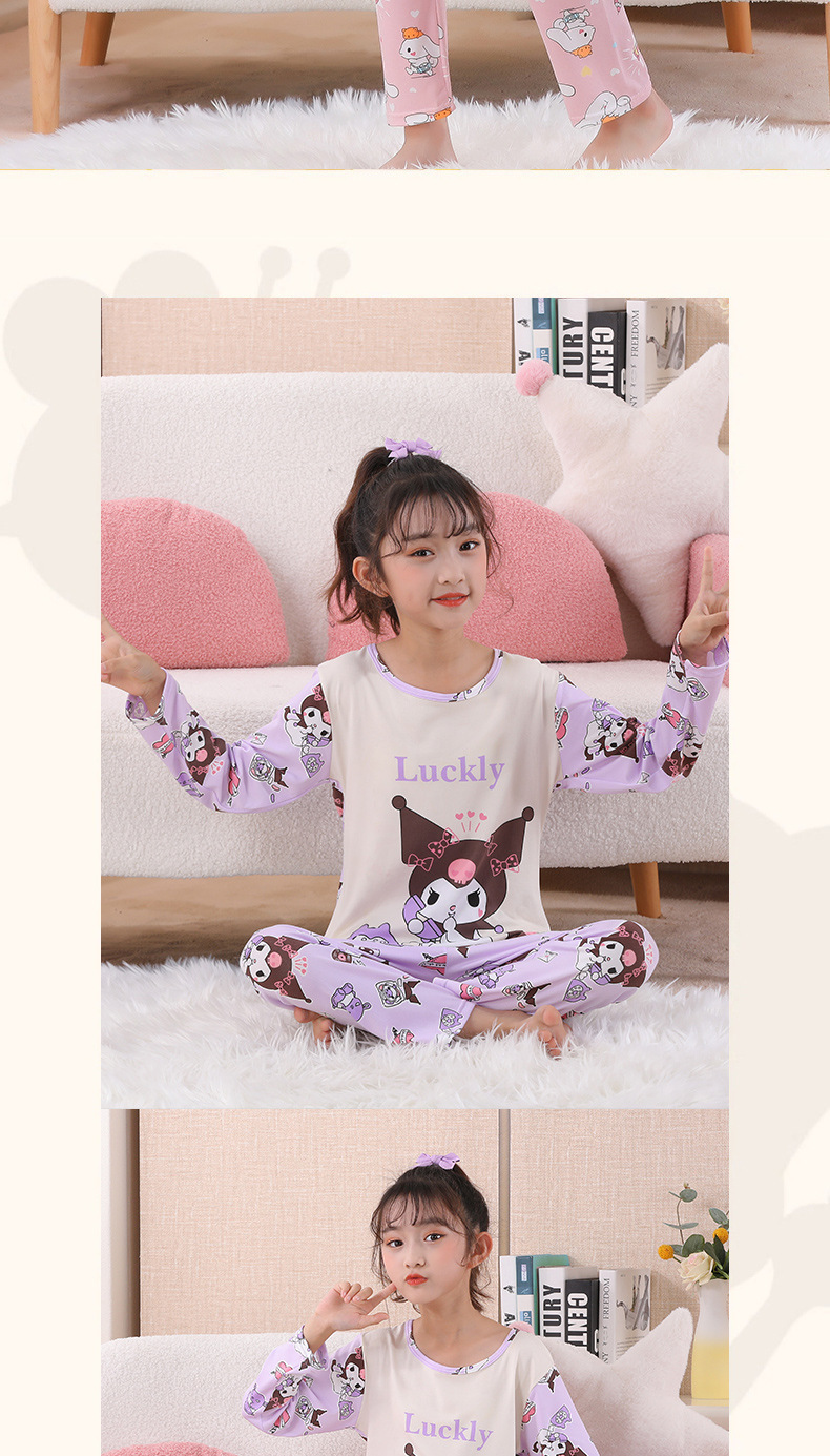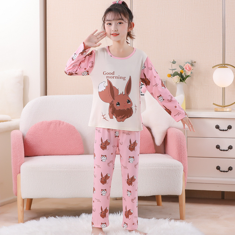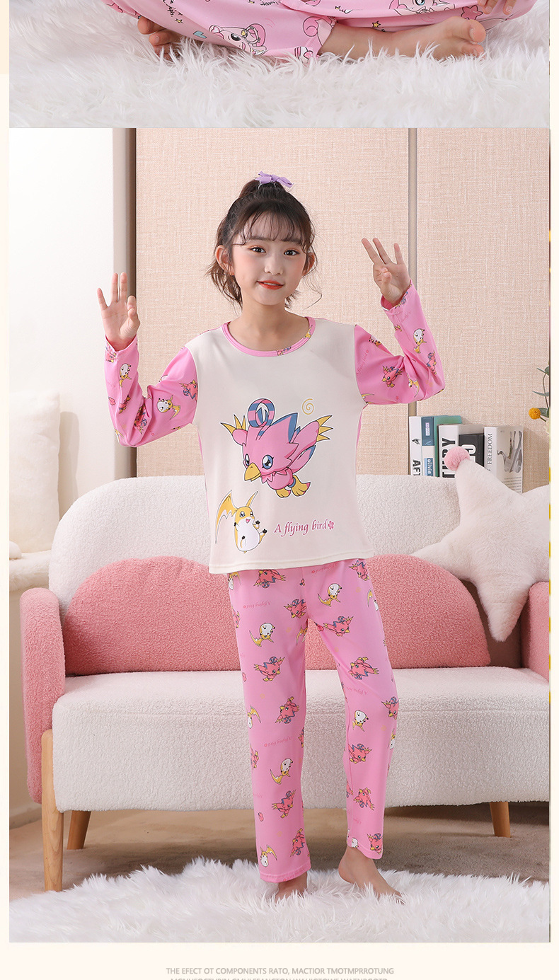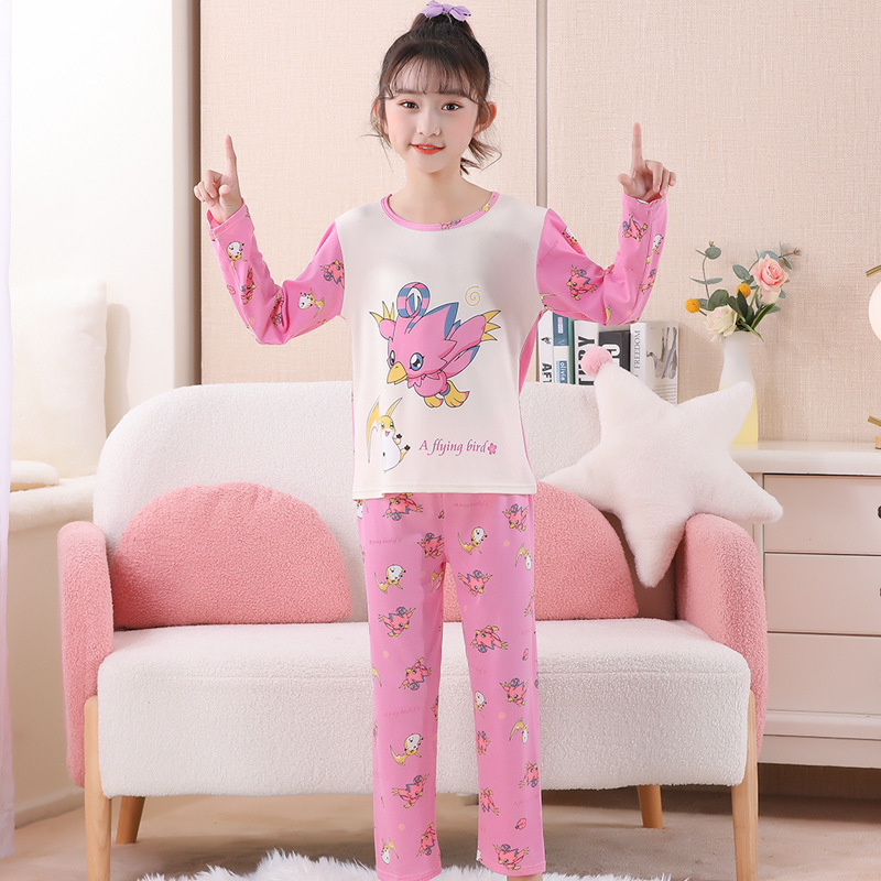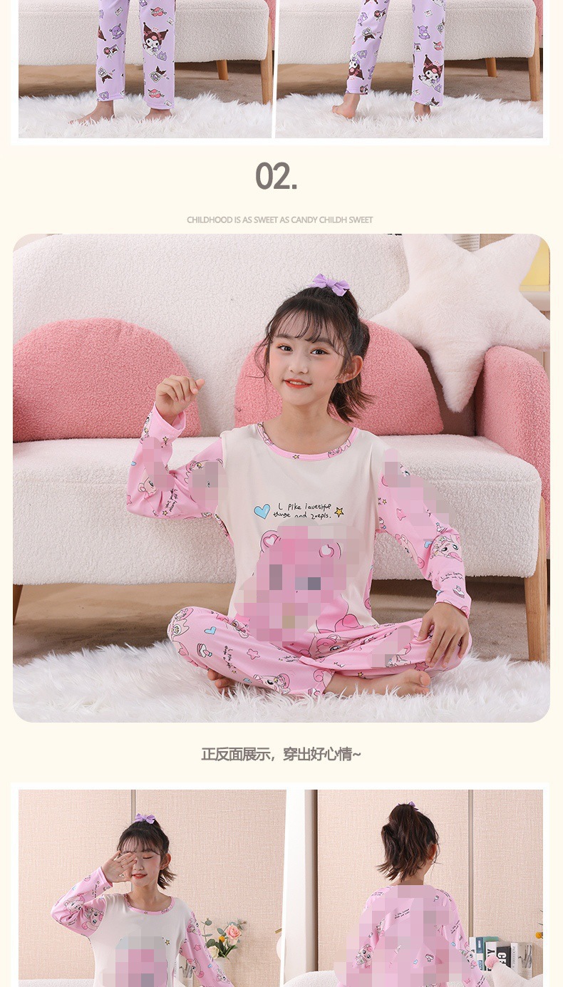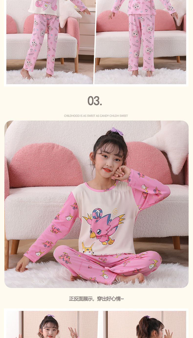 여자 잠옷 봄과 가을 만화 라운드 넥 풀오버 긴 소매 가정 의류 세트 큰 어린이 아기 소녀 가정 의류스토어 가기
