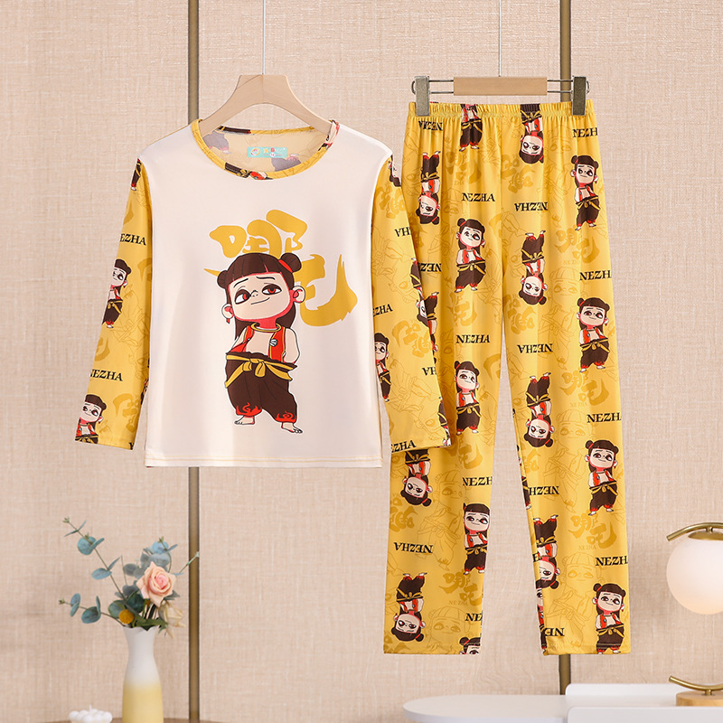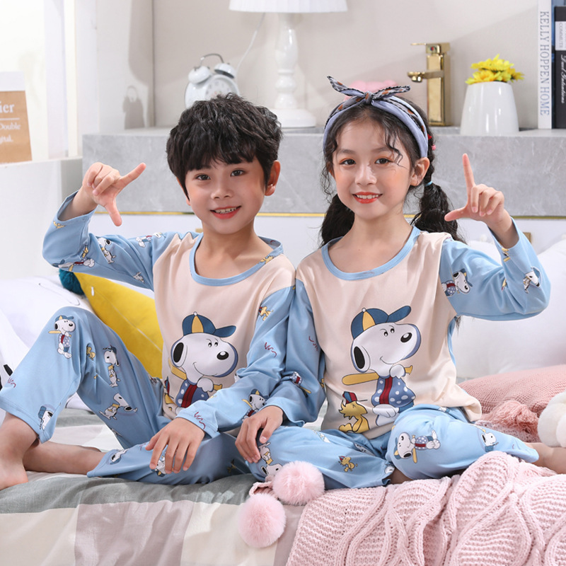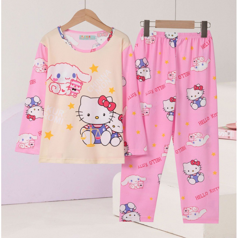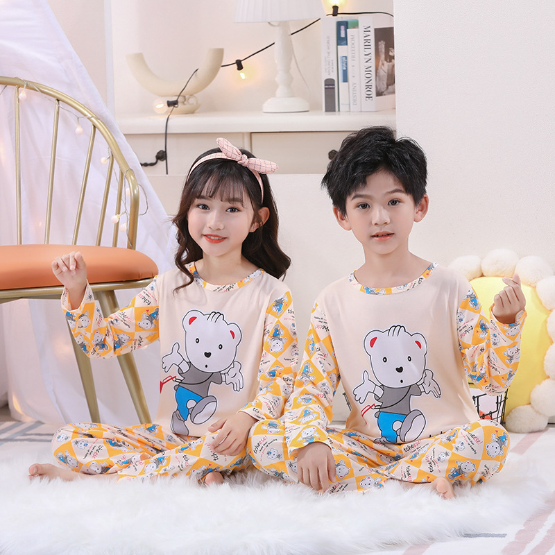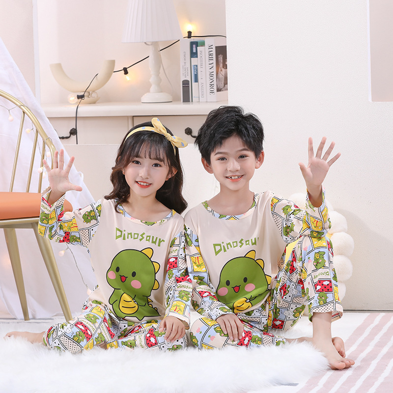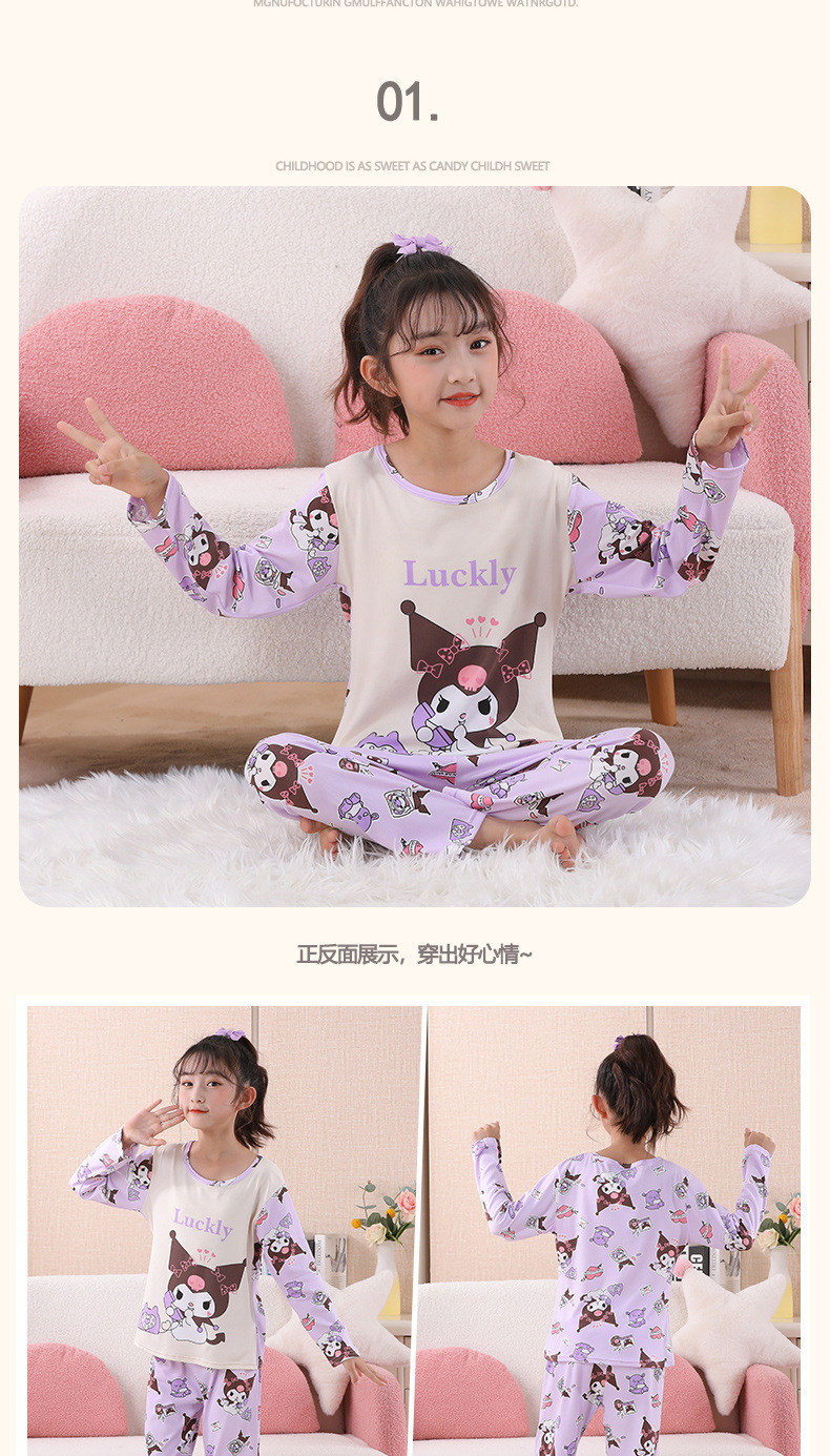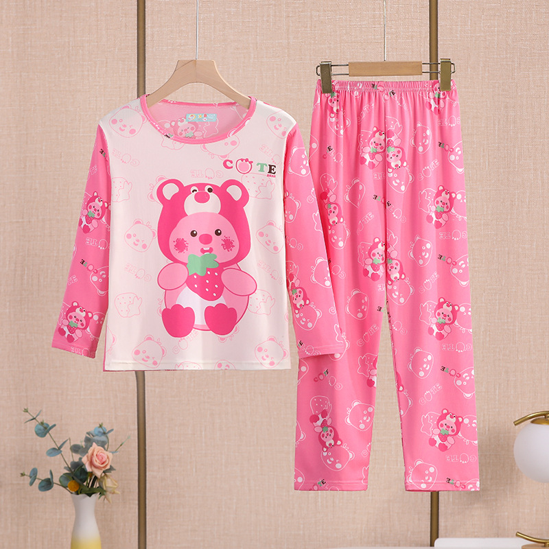 여자 잠옷 봄과 가을 만화 라운드 넥 풀오버 긴 소매 가정 의류 세트 큰 어린이 아기 소녀 가정 의류스토어 가기