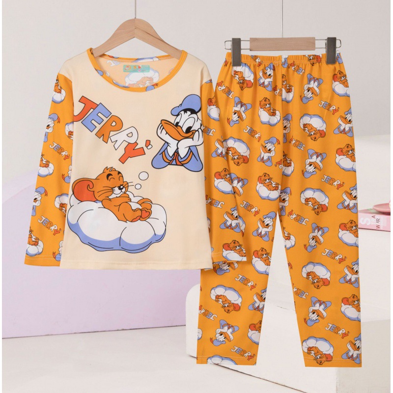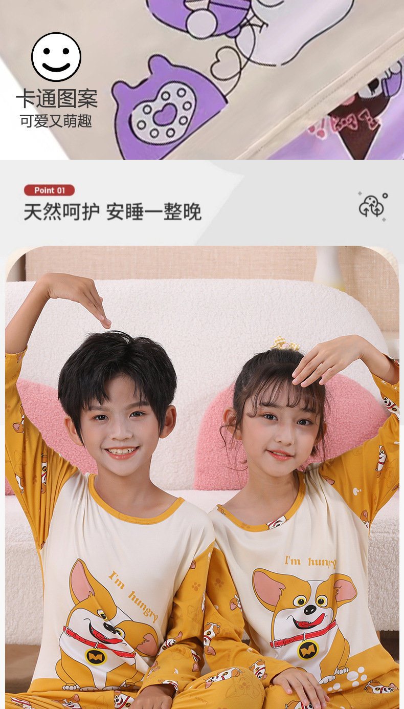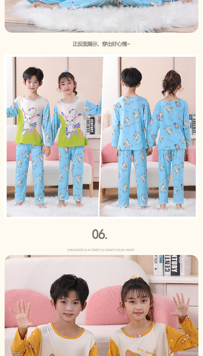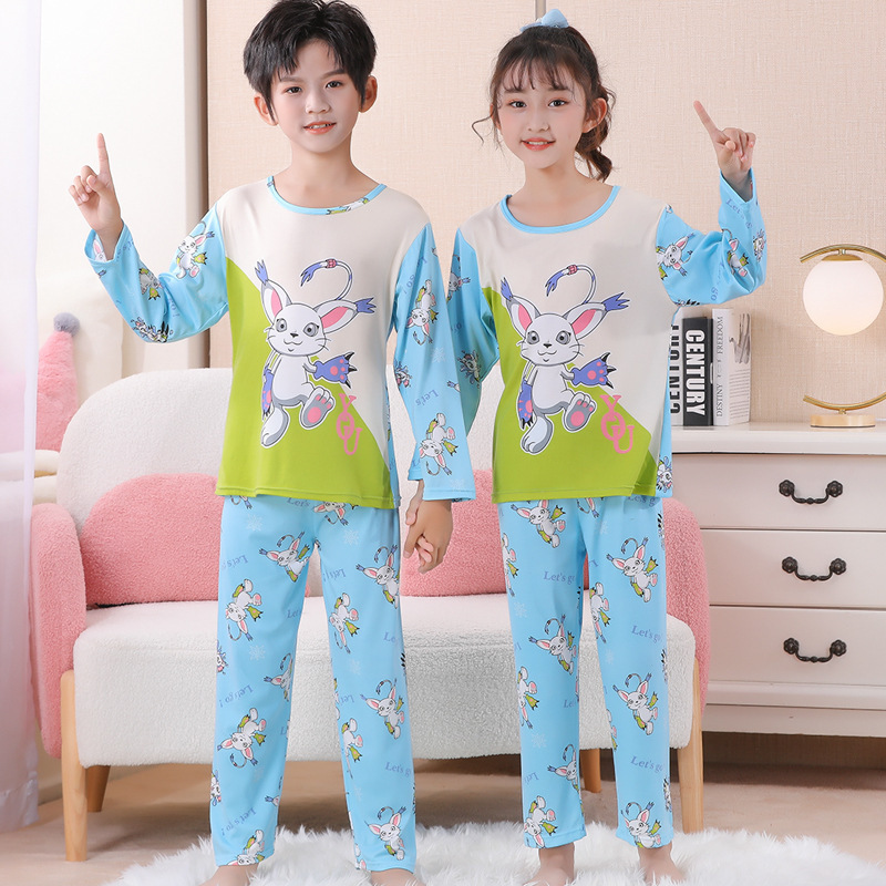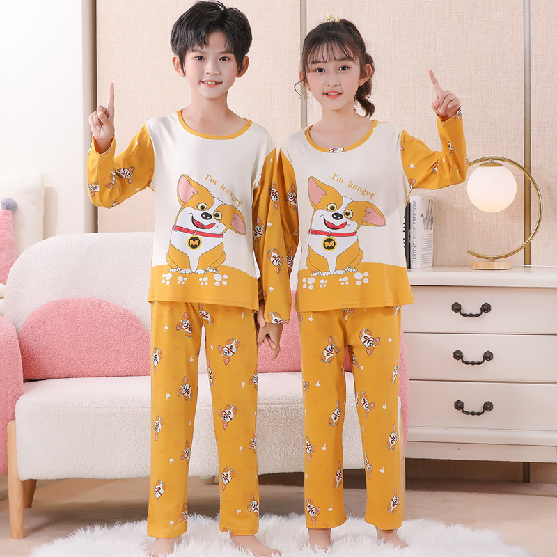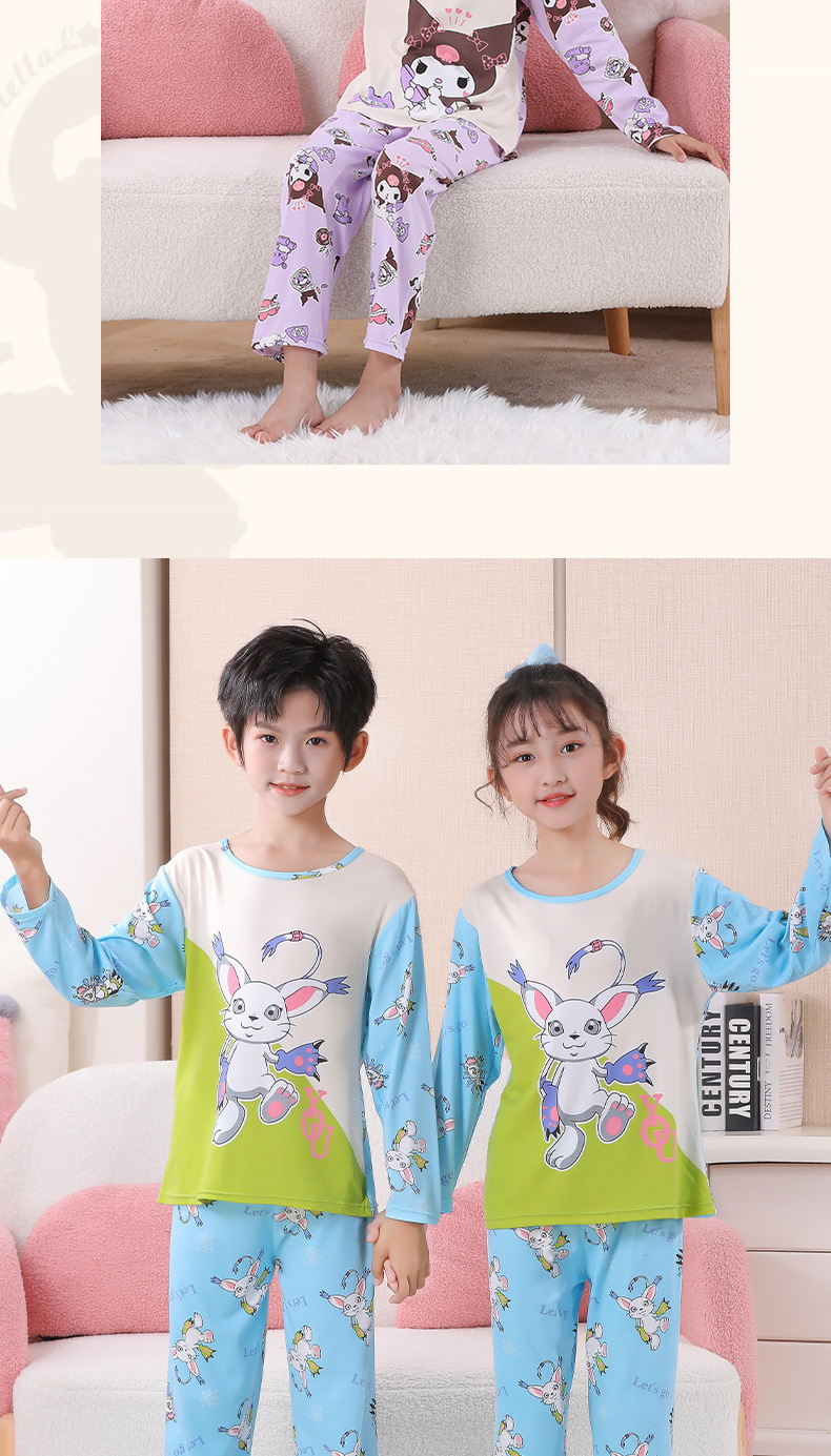 여자 잠옷 봄과 가을 만화 라운드 넥 풀오버 긴 소매 가정 의류 세트 큰 어린이 아기 소녀 가정 의류스토어 가기