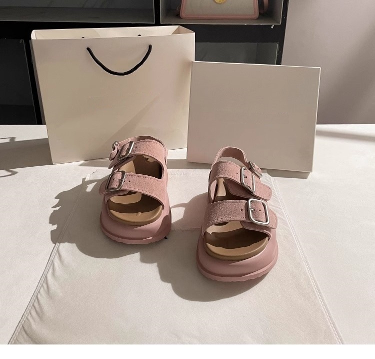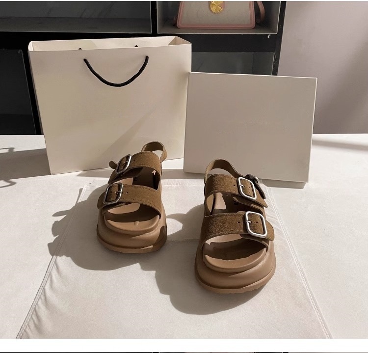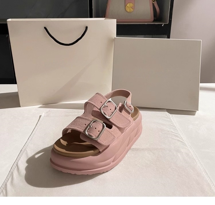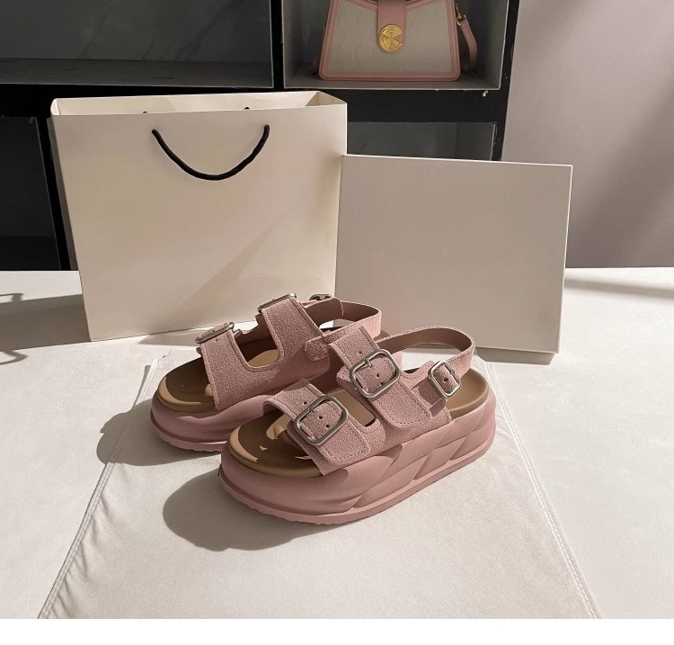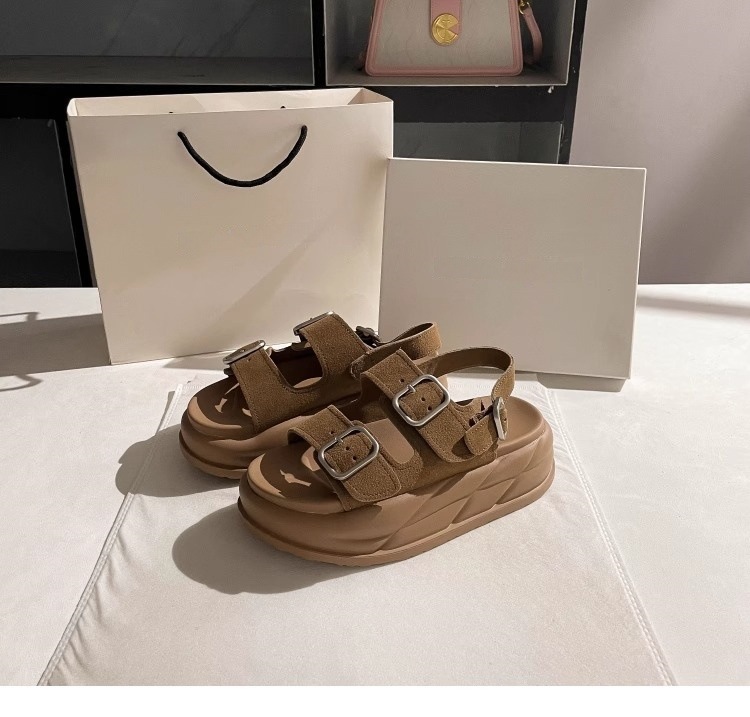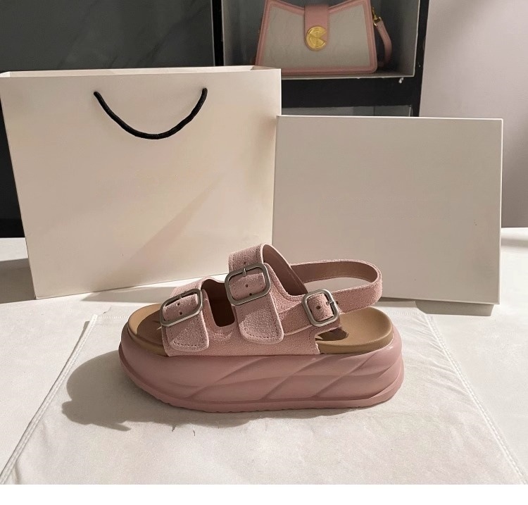 Zhican ~ 정품 가죽 Frosted 하이 엔드 플랫폼 플랫폼 외부 샌들 여성용 2025 년 여름 새로운 올 매치 로마 신발스토어 가기