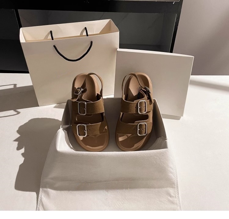Zhican ~ 정품 가죽 Frosted 하이 엔드 플랫폼 플랫폼 외부 샌들 여성용 2025 년 여름 새로운 올 매치 로마 신발