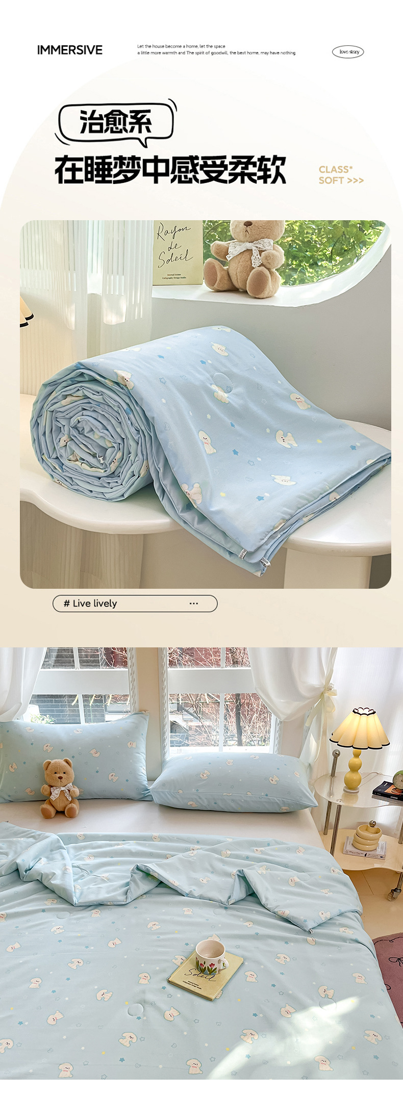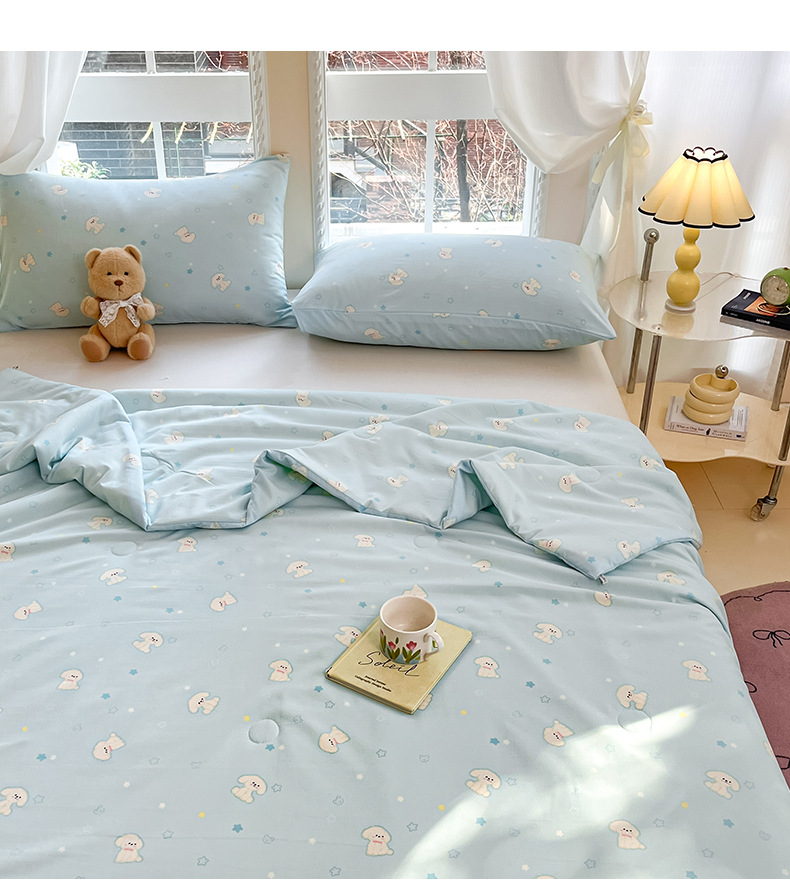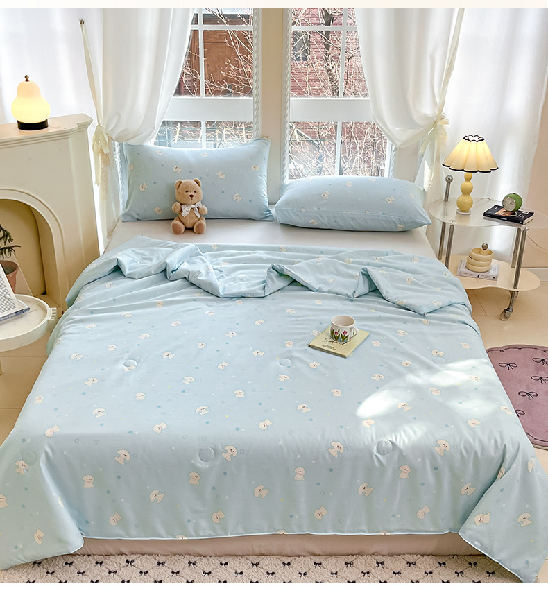 새로운 잠든 알몸 어머니와 유아 급료 콩 이불 여름 쿨 퀼트 더블 레이어 원사 여름 이불 클래스 슈퍼 소프트 에어컨 이불 얇은 이불 기계 세척 가능스토어 가기
