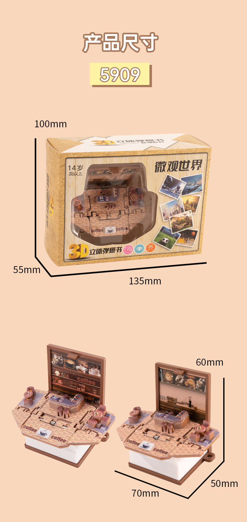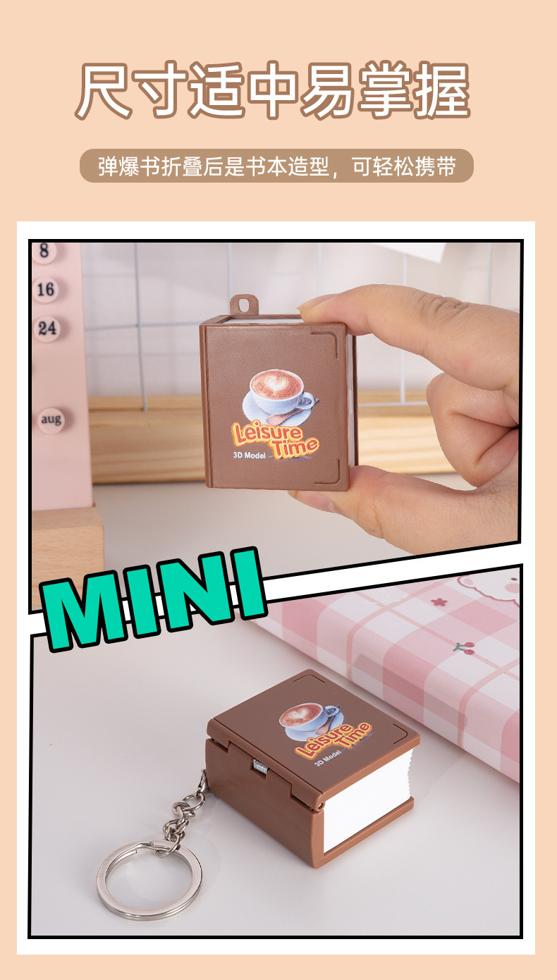 크리 에이 티브 미니 3D 3 차원 접이식 폭탄 폭발 책 미니어처 커피 북 객실 장식 모델 장점 키 캡 키 체인스토어 가기