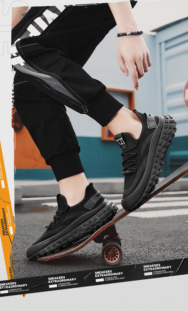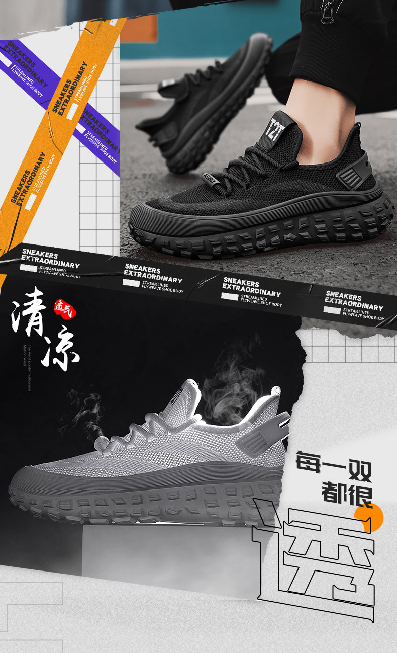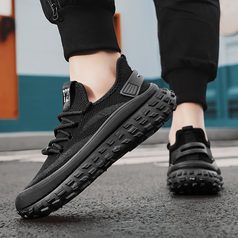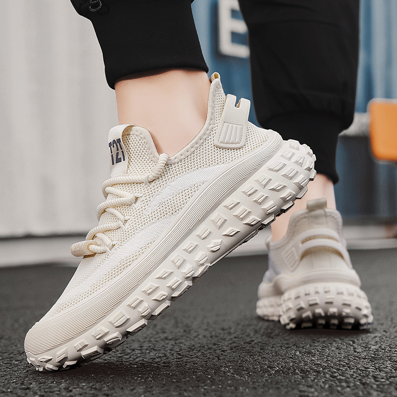 봄 여름 남성 신발 2025 새로운 플라이 짠 메쉬 스포츠 신발 통기성 두꺼운 밑창 타이어 바닥 유행 패션 캐주얼 신발스토어 가기