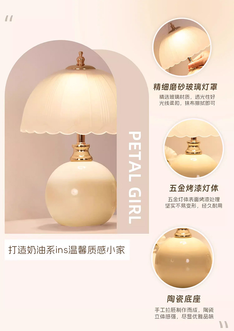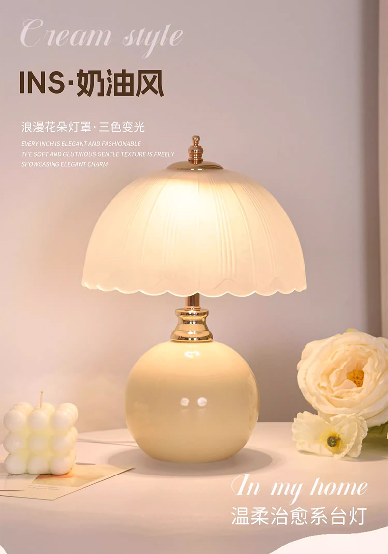 [공장 도매] 크림 스타일 테이블 램프 침실 침실 테이블 라이트 럭셔리 높은 수준의 창조적 인 분위기 테이블 램프 야간 조명