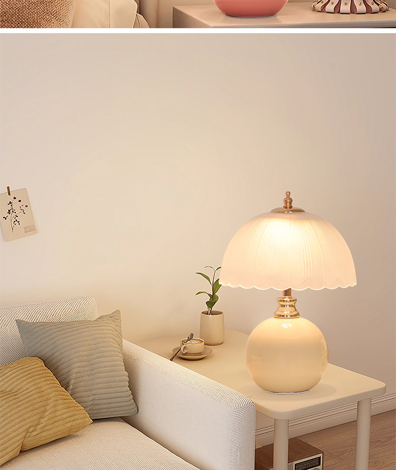 [공장 도매] 크림 스타일 테이블 램프 침실 침실 테이블 라이트 럭셔리 높은 수준의 창조적 인 분위기 테이블 램프 야간 조명스토어 가기