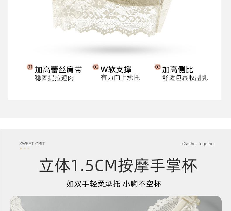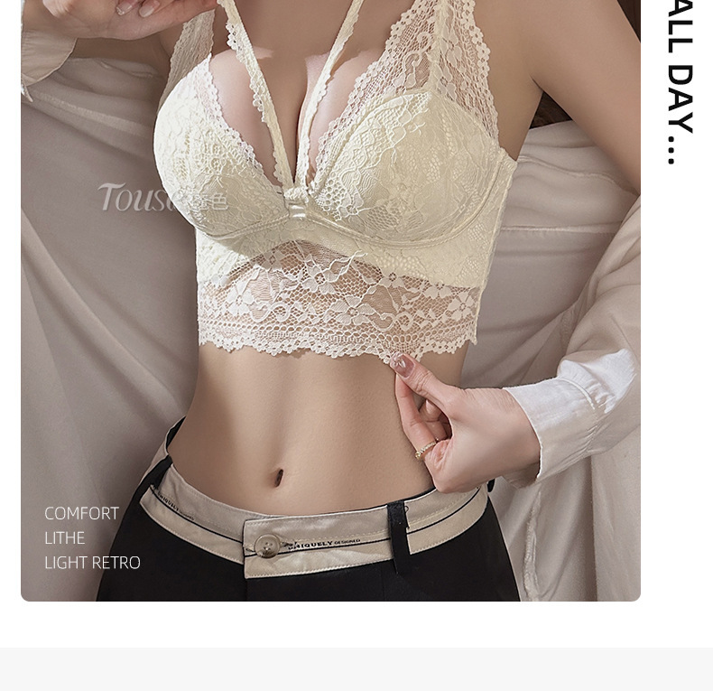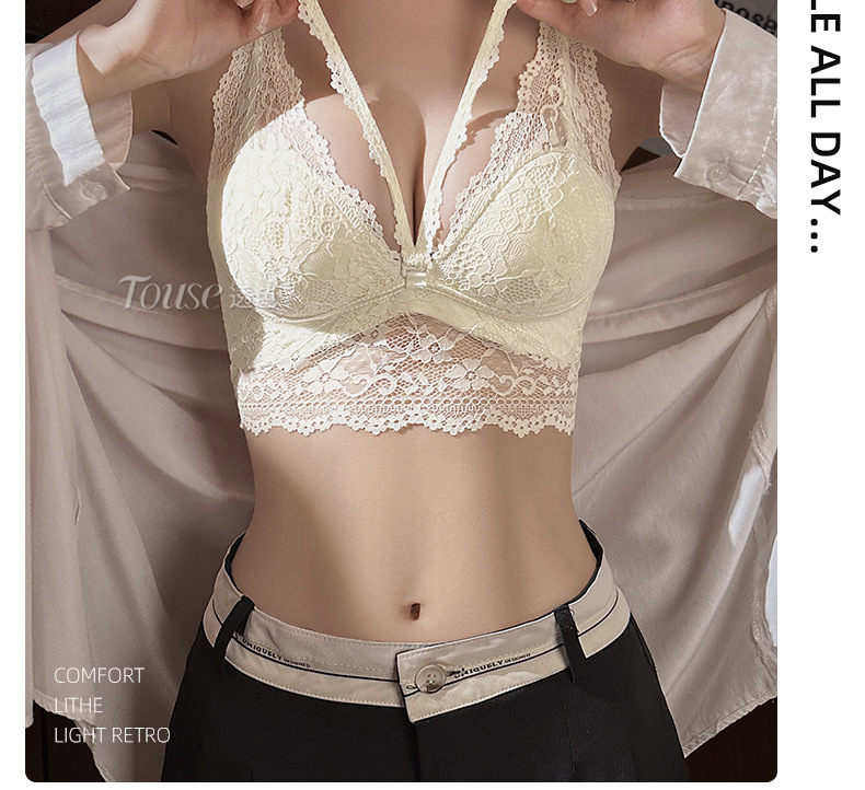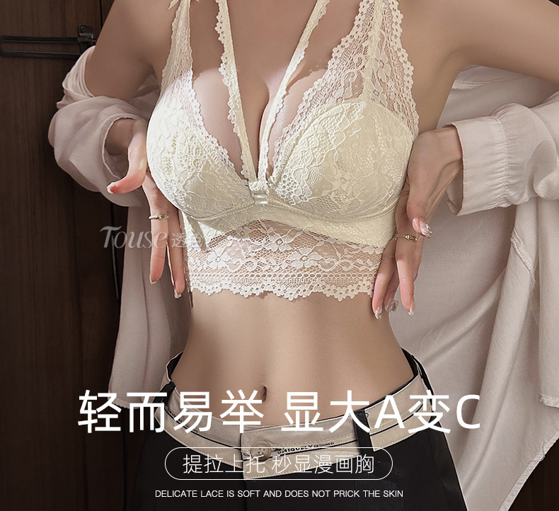 프랑스 스타일 순수한 욕망 목 레이스 내부 속옷 여성의 작은 가슴 큰 빈 컵 슬링 브래지어스토어 가기