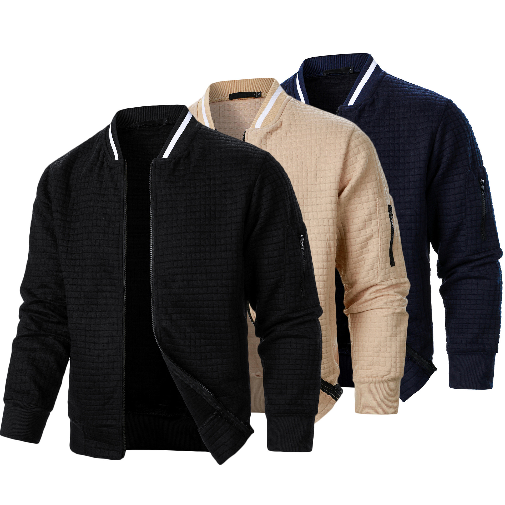 남성용 새 지퍼 스탠드 칼라 스웨트 셔츠 재킷 남성 캐주얼 체크 무늬 카디건 스웨트 셔츠 3 피스 세트스토어 가기