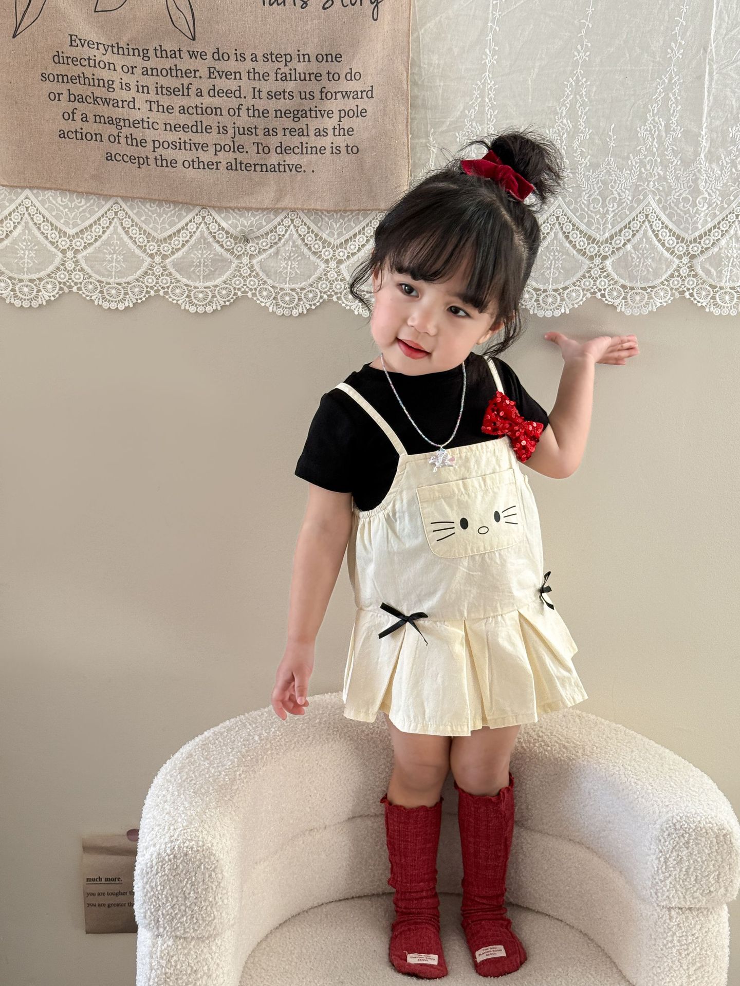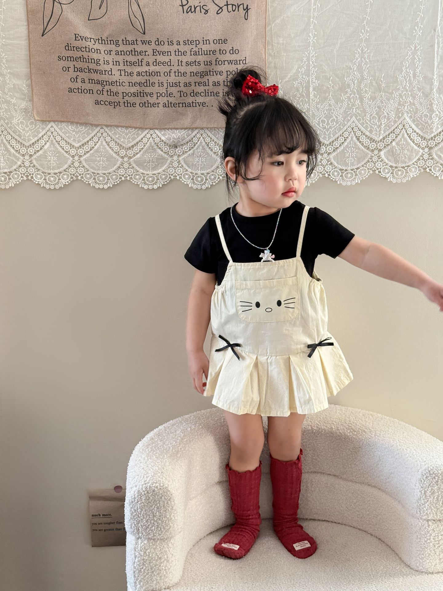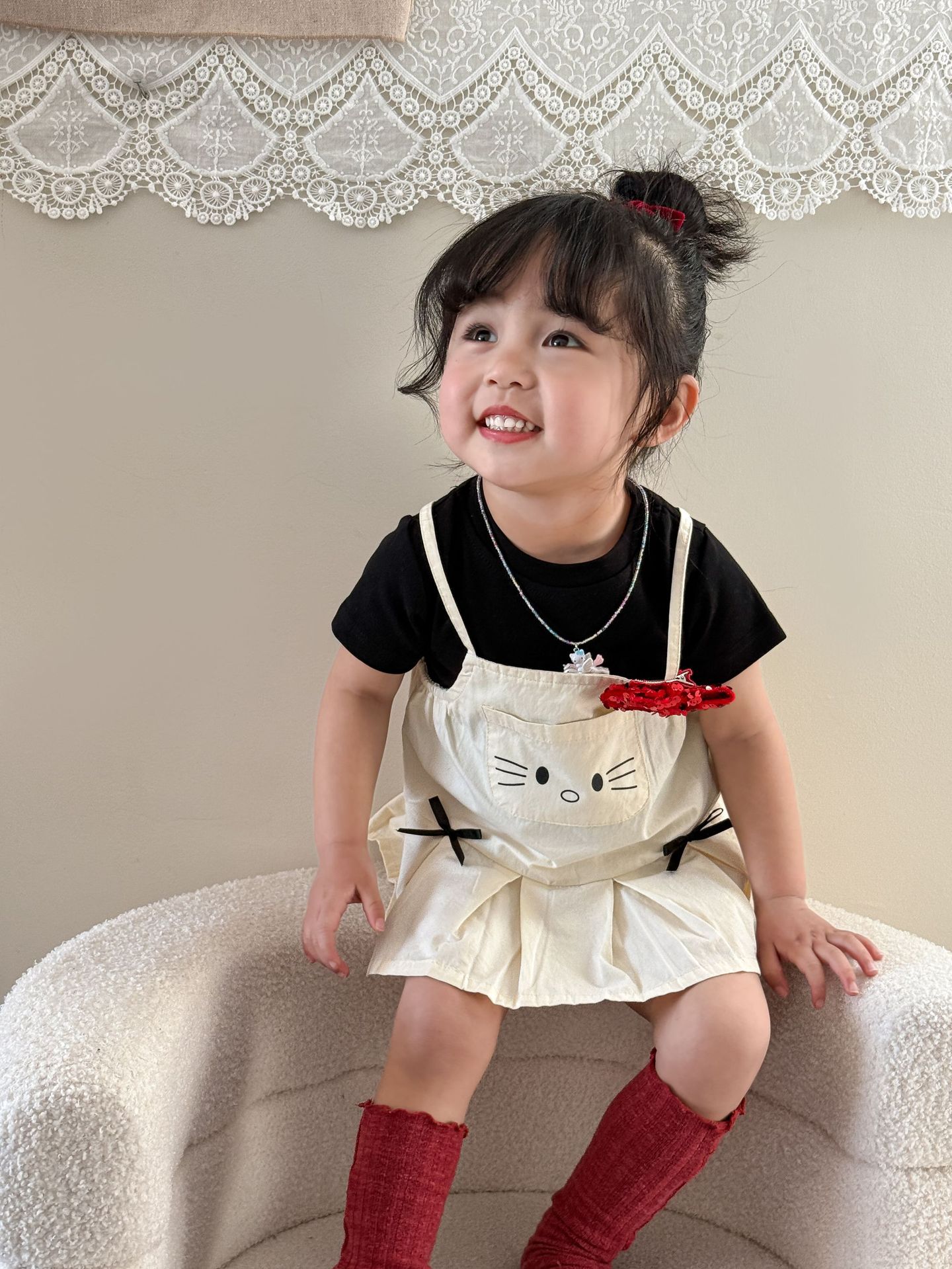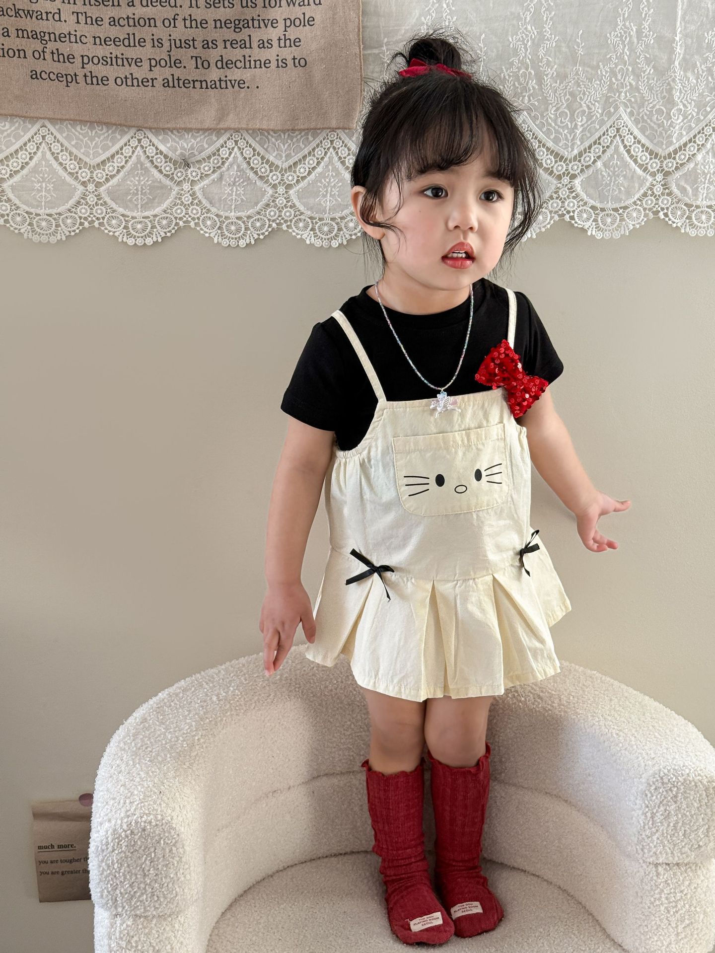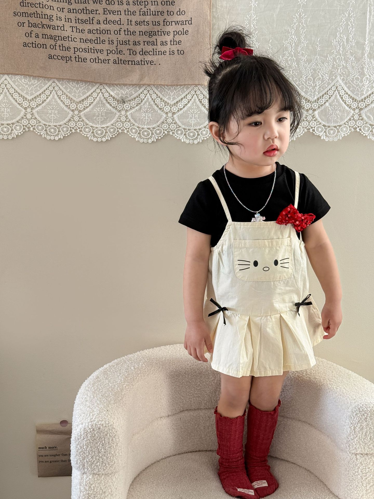 사탕 수수 배 아동복 소녀 원피스 세트 2025 년 여름 새 어린이 반팔 티셔츠 서스펜더 스커트 아기 옷스토어 가기