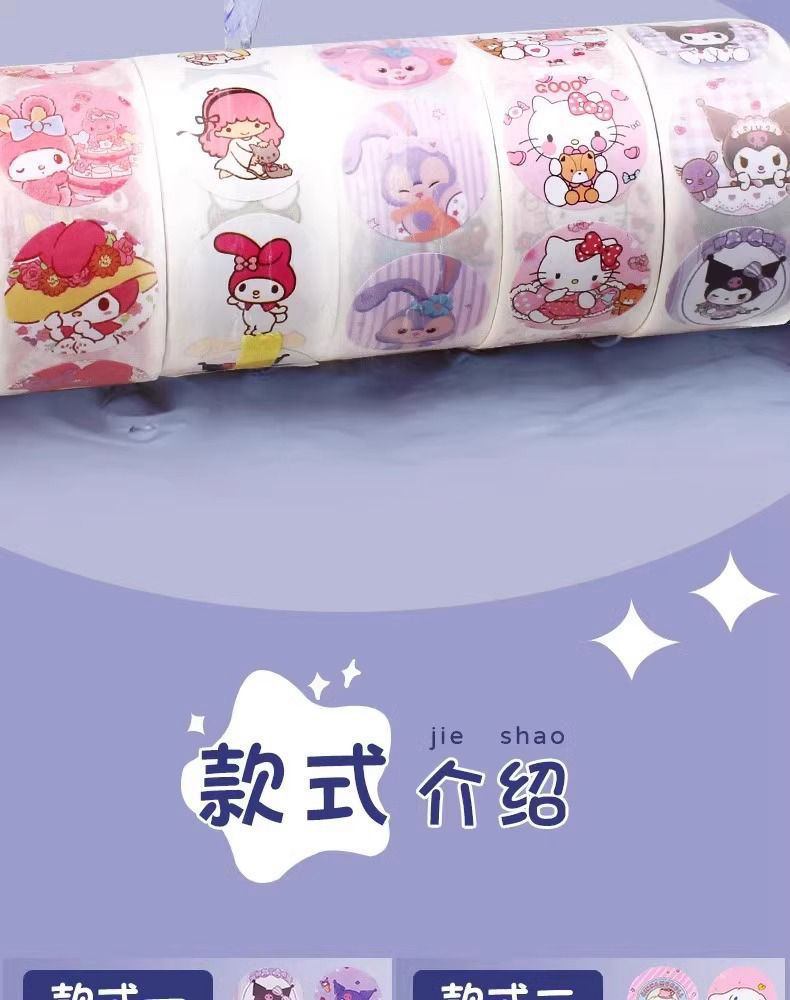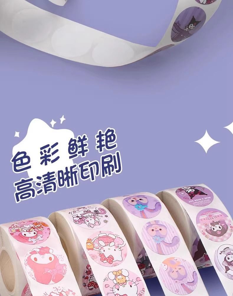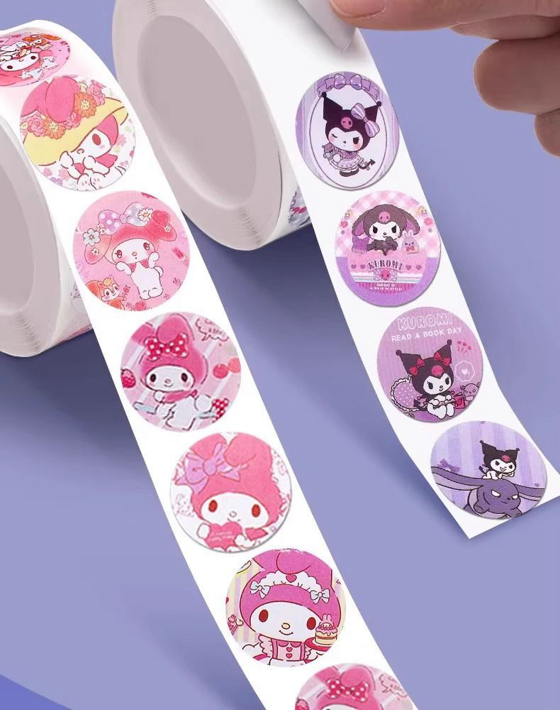 Kuromi 소녀 스티커 Sanrio 핸드북 스티커 유치원 보상 자체 접착 씰링 스티커 라벨 종이 장식스토어 가기