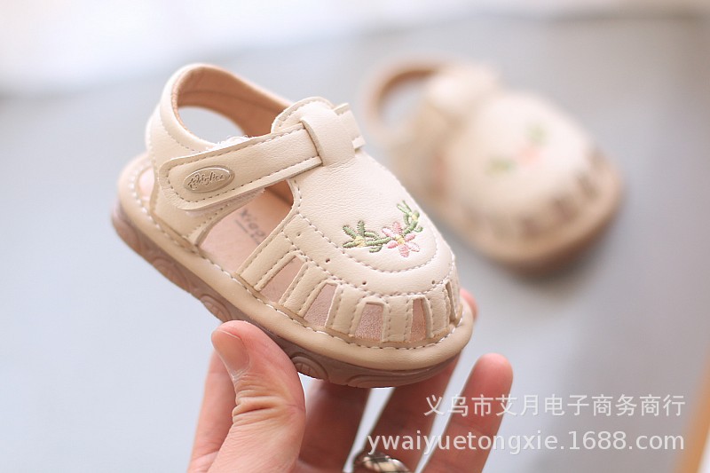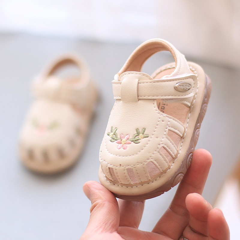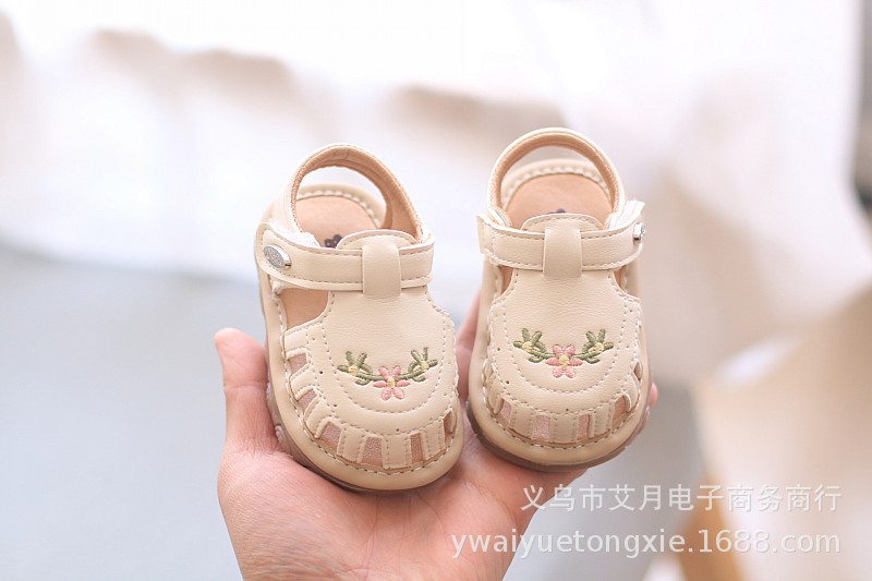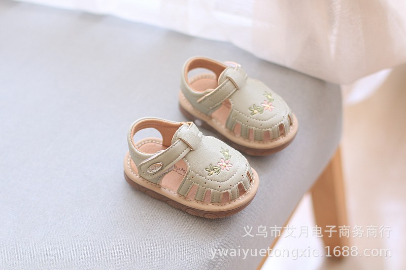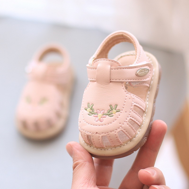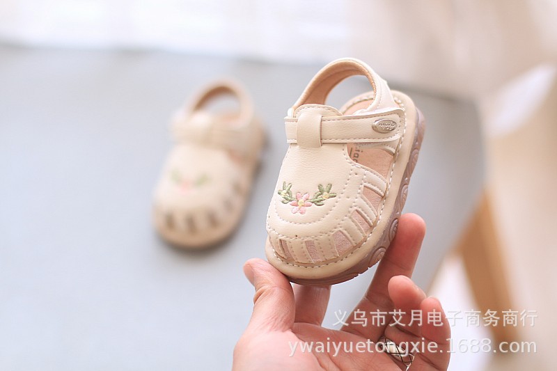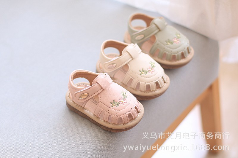새로운 봄과 여름 자수 아기 샌들 아기 소녀 구멍 신발 0 2 세 어린이 신발 어린 소녀의 부드러운 바닥 호출 신발스토어 가기