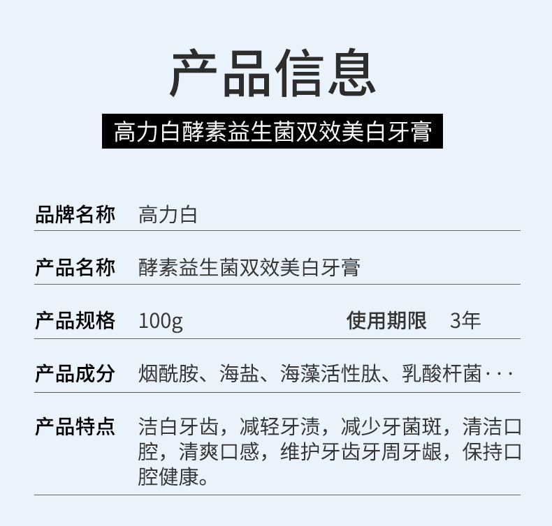 • Gaoli Bai 프로바이오틱 더블 액션 화이트닝 치약 100g