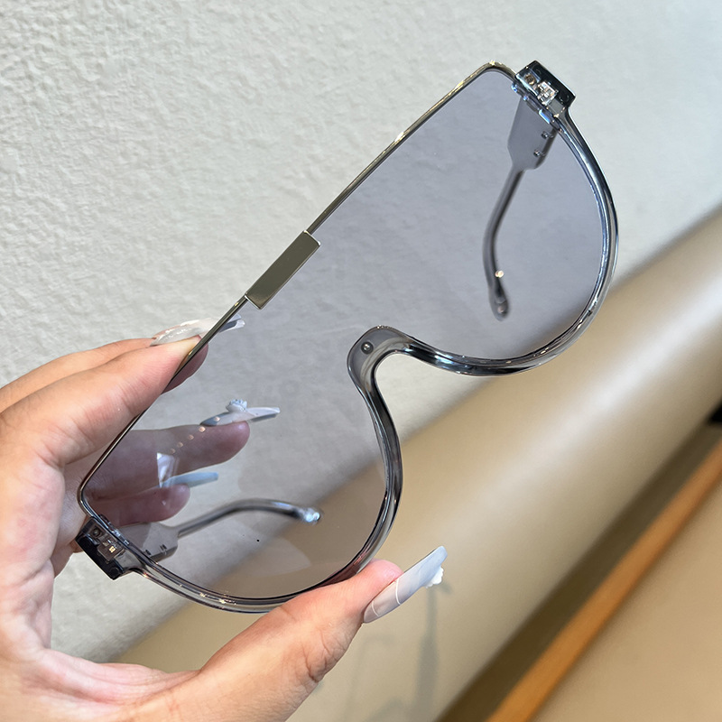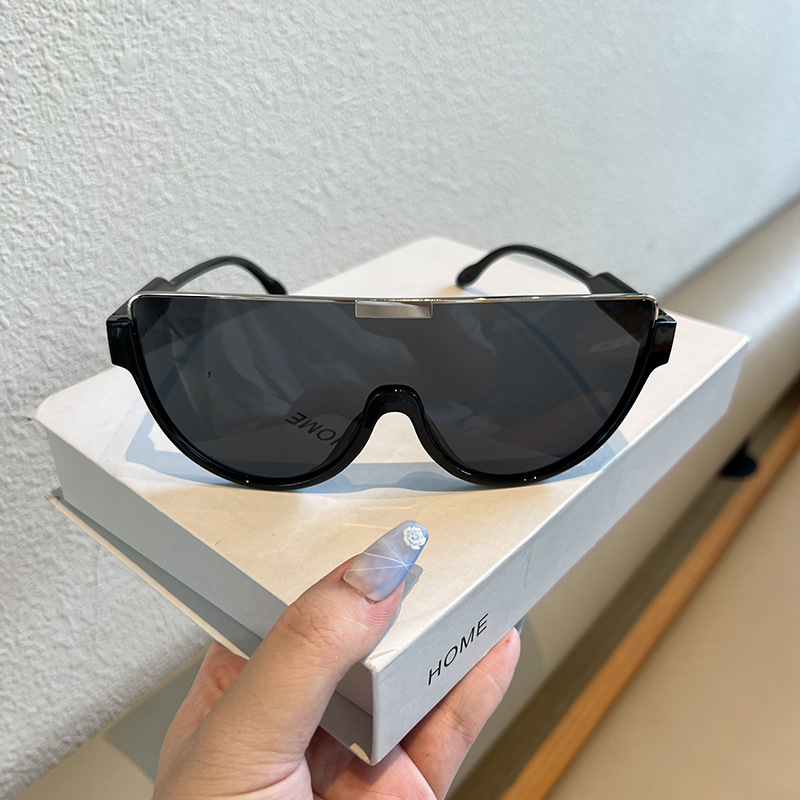 패션 대형 프레임 일부분 렌즈 선글라스 여성의 큰 얼굴 슬리밍 다크 브라운 거리 사진 커플 선글라스 남성용 트렌디 한 인터넷 레드