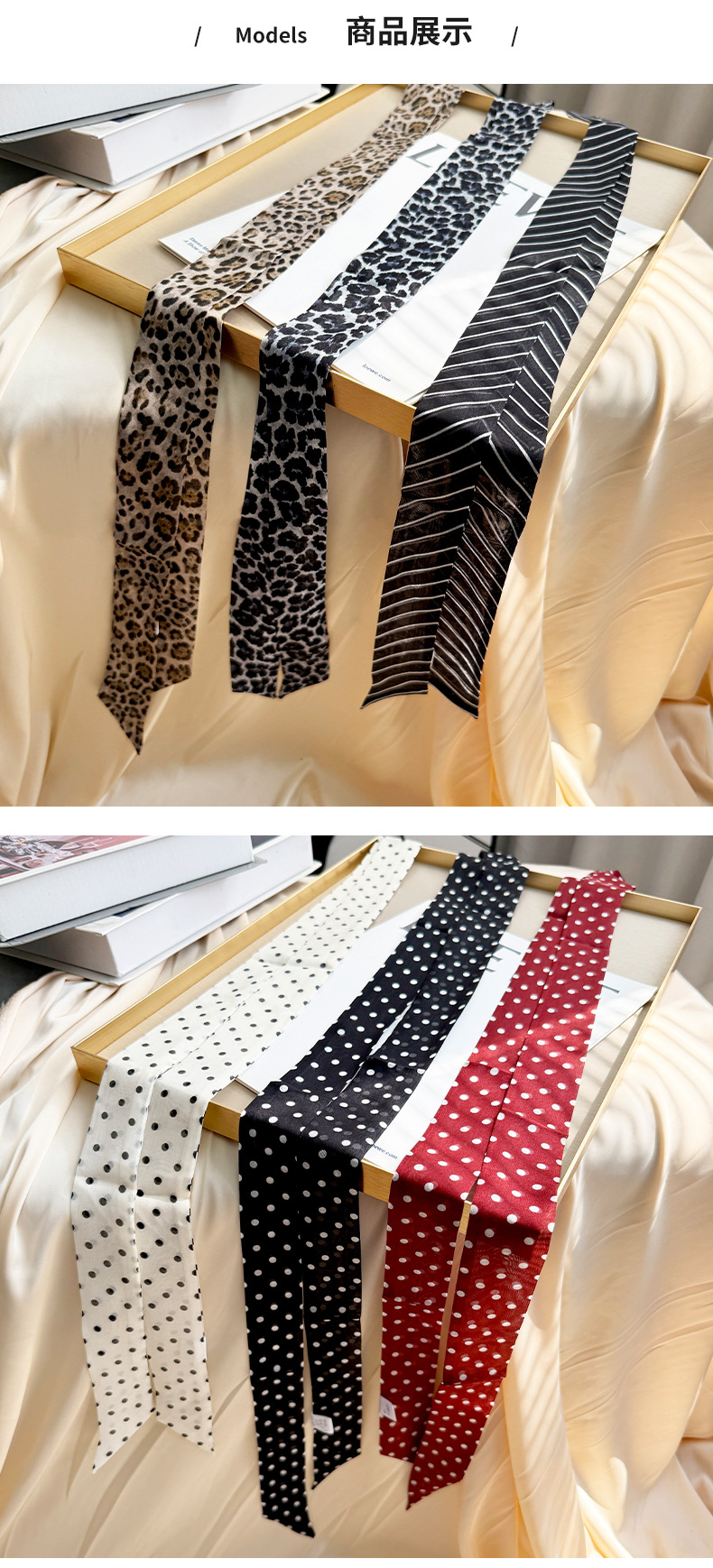 2026 봄 신상 여성용 쉬폰 스몰 칼라 숄 실크 쉬폰 스카프 우아하고 고급스러운 슬림 스트립 스카프