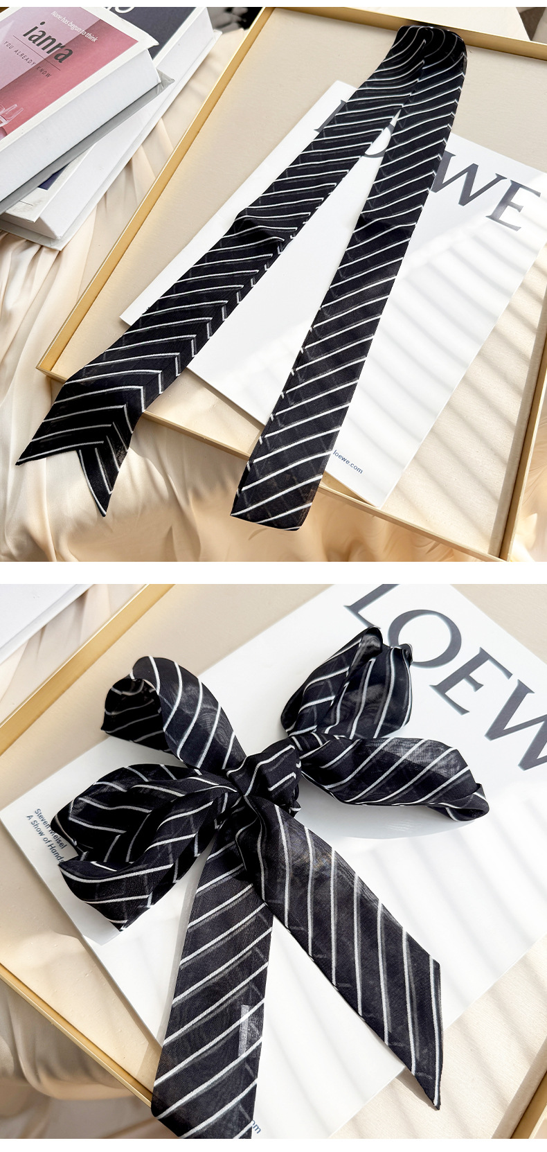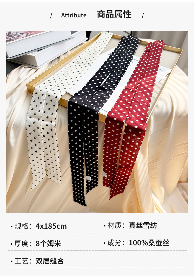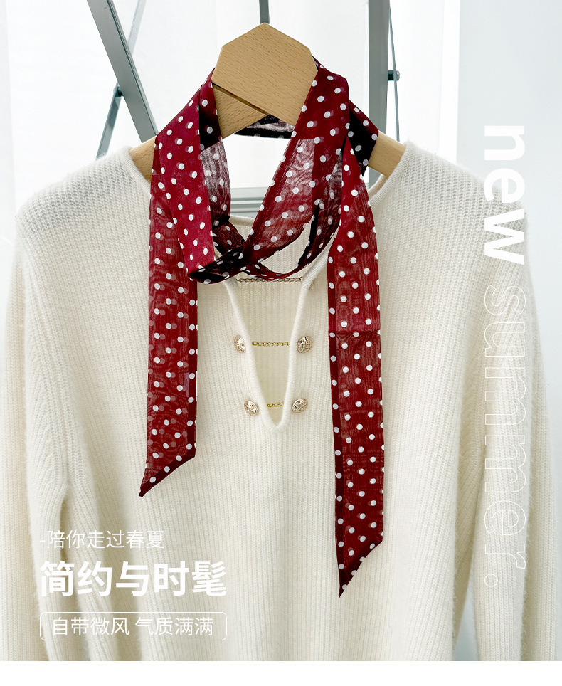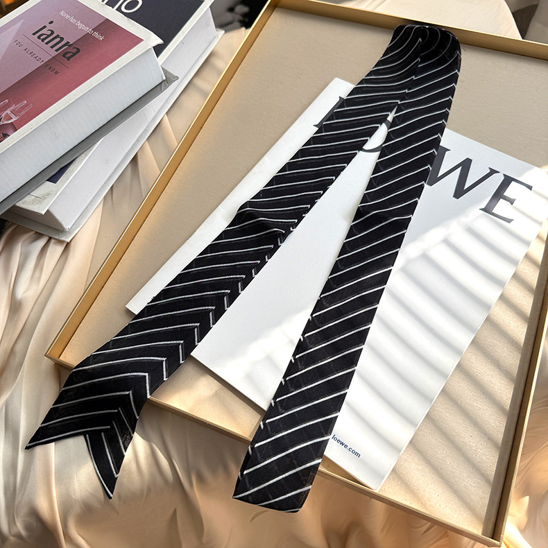 2026 봄 신상 여성용 쉬폰 스몰 칼라 숄 실크 쉬폰 스카프 우아하고 고급스러운 슬림 스트립 스카프스토어 가기