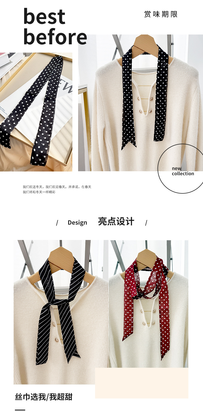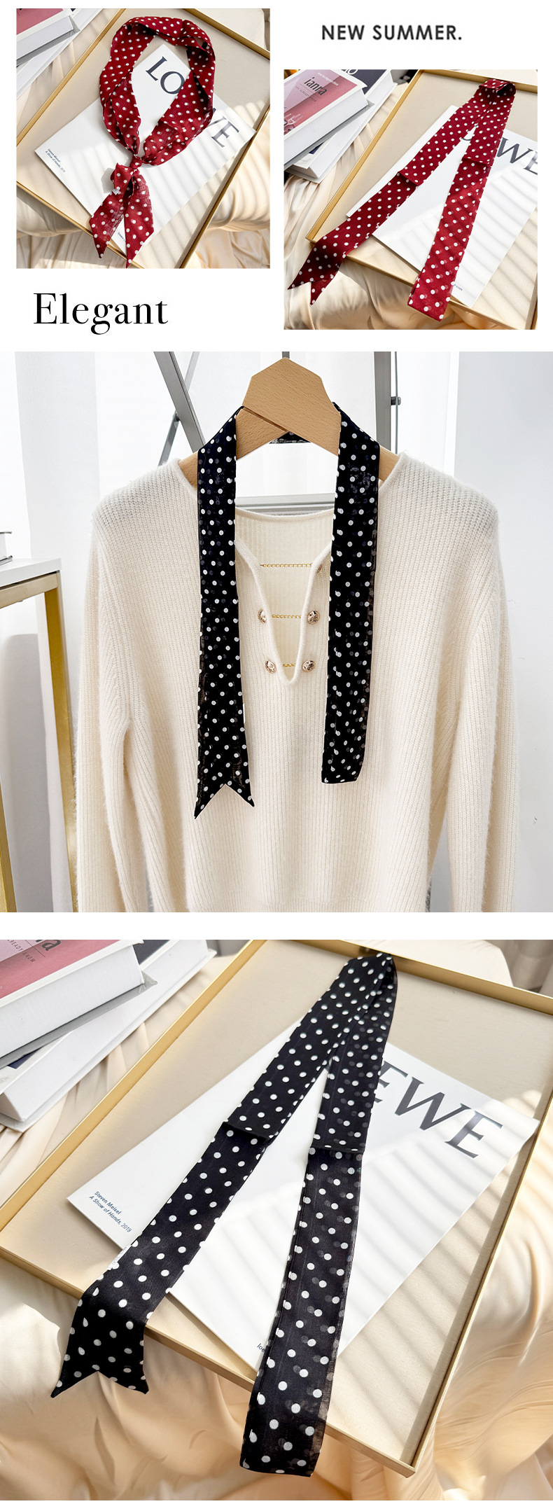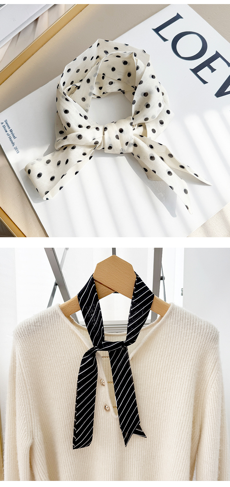 2026 봄 신상 여성용 쉬폰 스몰 칼라 숄 실크 쉬폰 스카프 우아하고 고급스러운 슬림 스트립 스카프스토어 가기