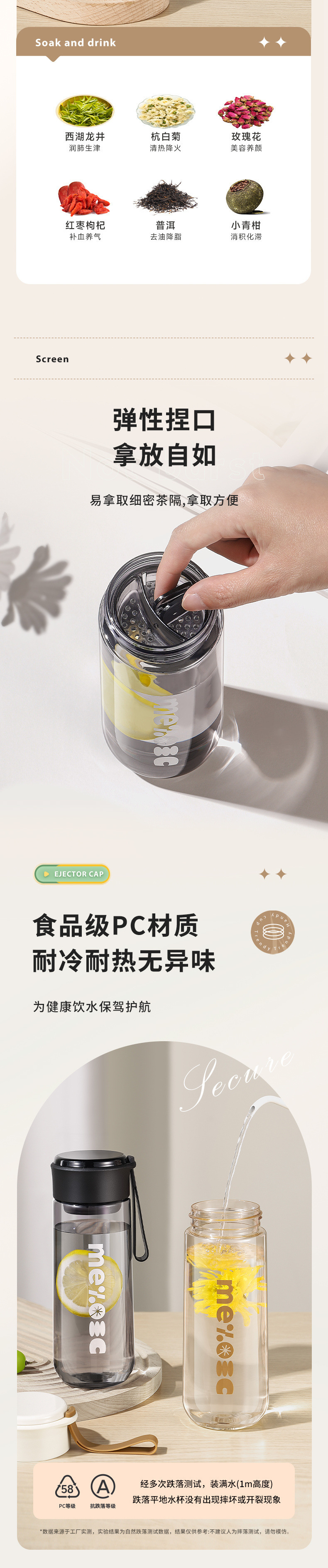 남학생과 여학생을 위한 워워터컵, 스포츠용 대용량 고온 방지 플라스틱 컵, 간단한 낙하 방지 휴대용 필터 티컵