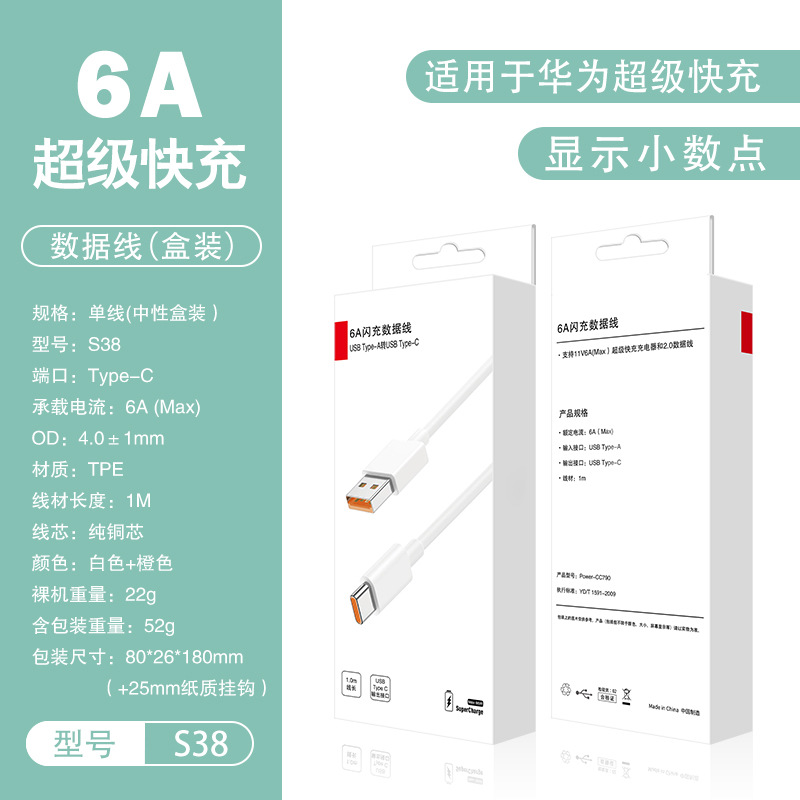 • 66W 완전 호환 세트 [3C 인증 고속 충전 헤드 + 데이터 케이블] 중립 박스